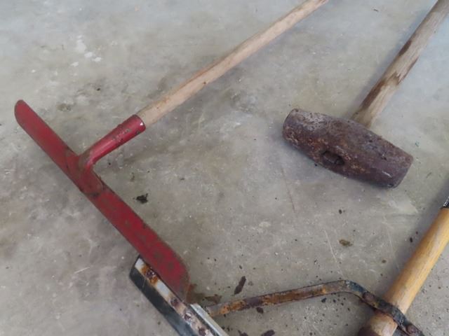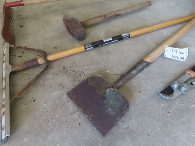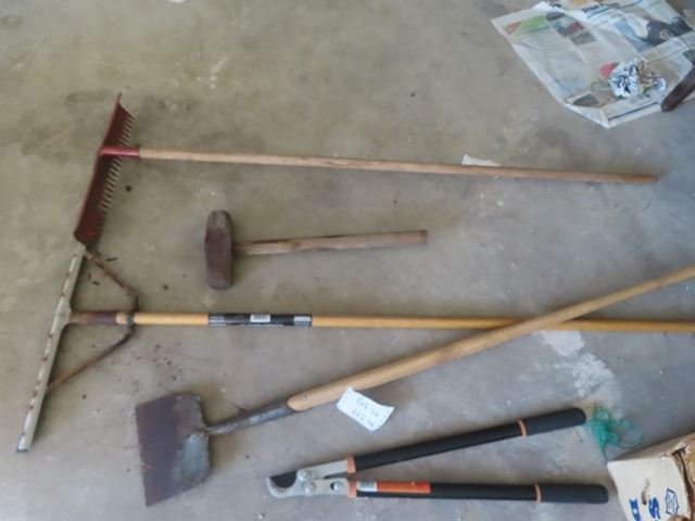 5 Yard Tools; Hedge Clippers, Rake, Sledge Hammer, Squeegee, Edger