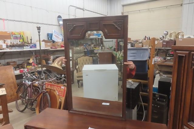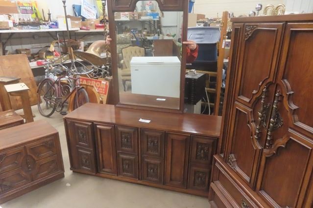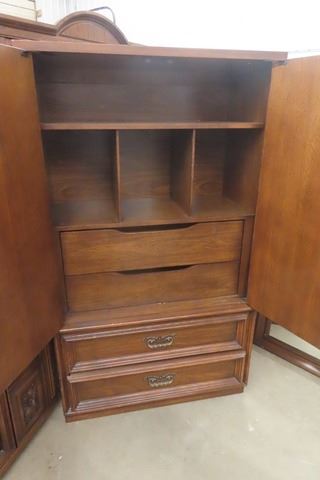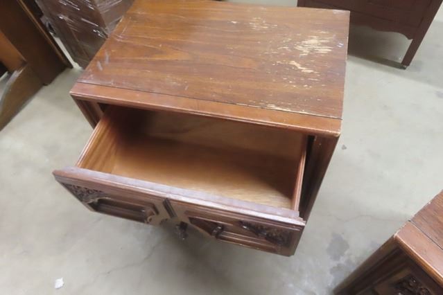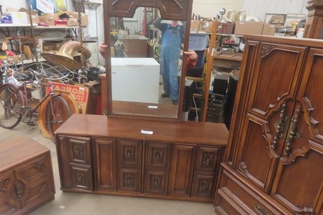 5 pc Bedroom Suite: Dresser 18"×27"×64 with Mirror Add 31"×49" + Tall Dresser 18"×37"×64" + 2 End Tables 17"×22"×24" & 62" Wide Headboard