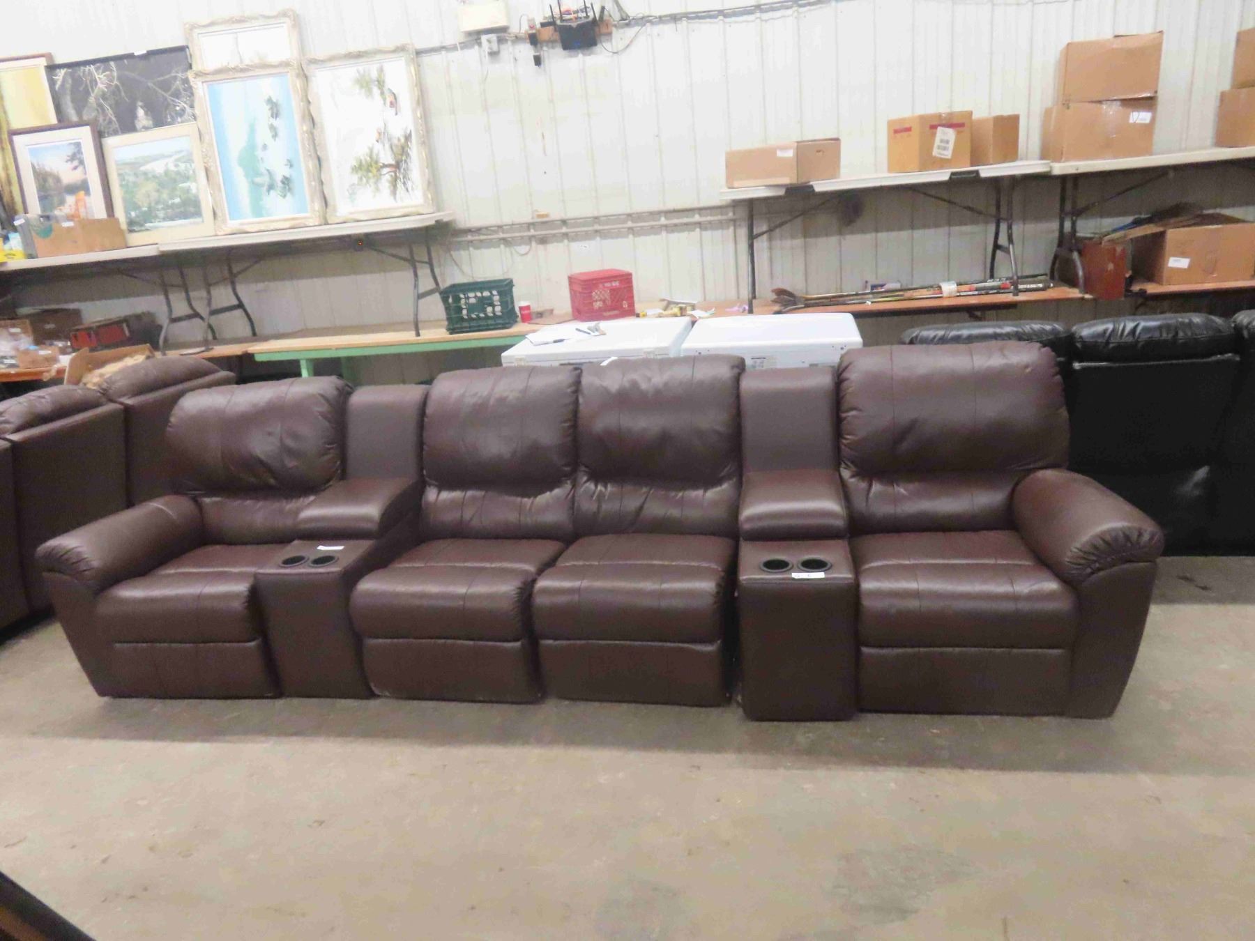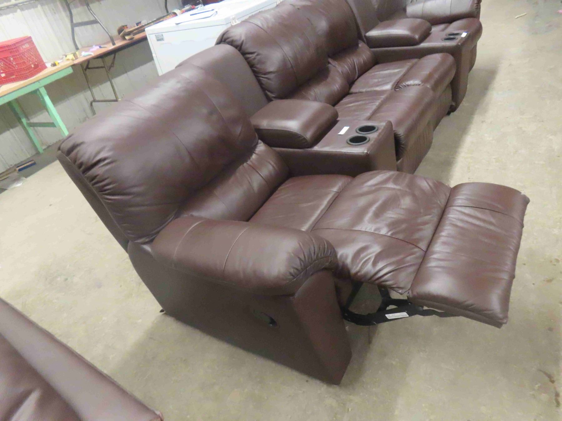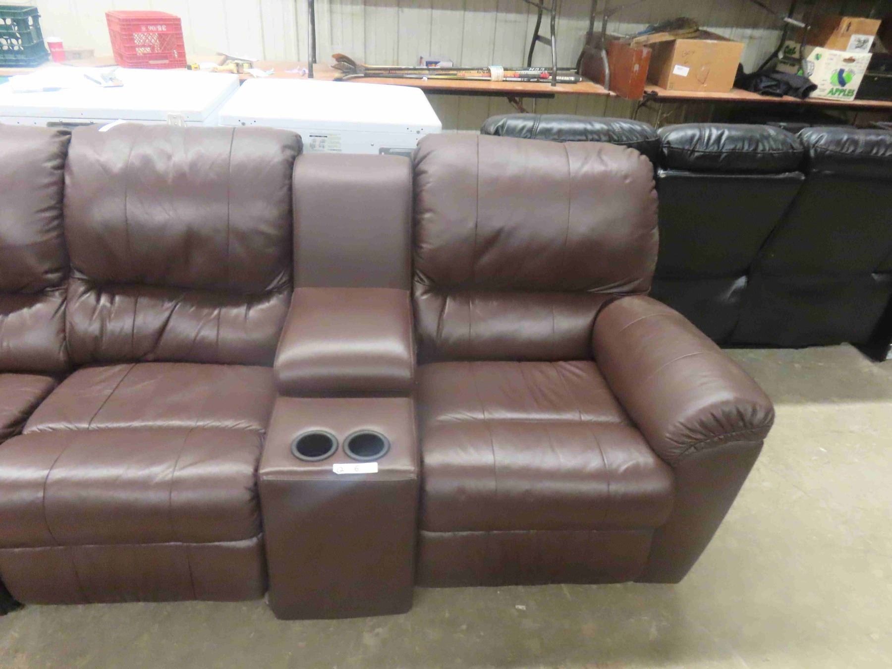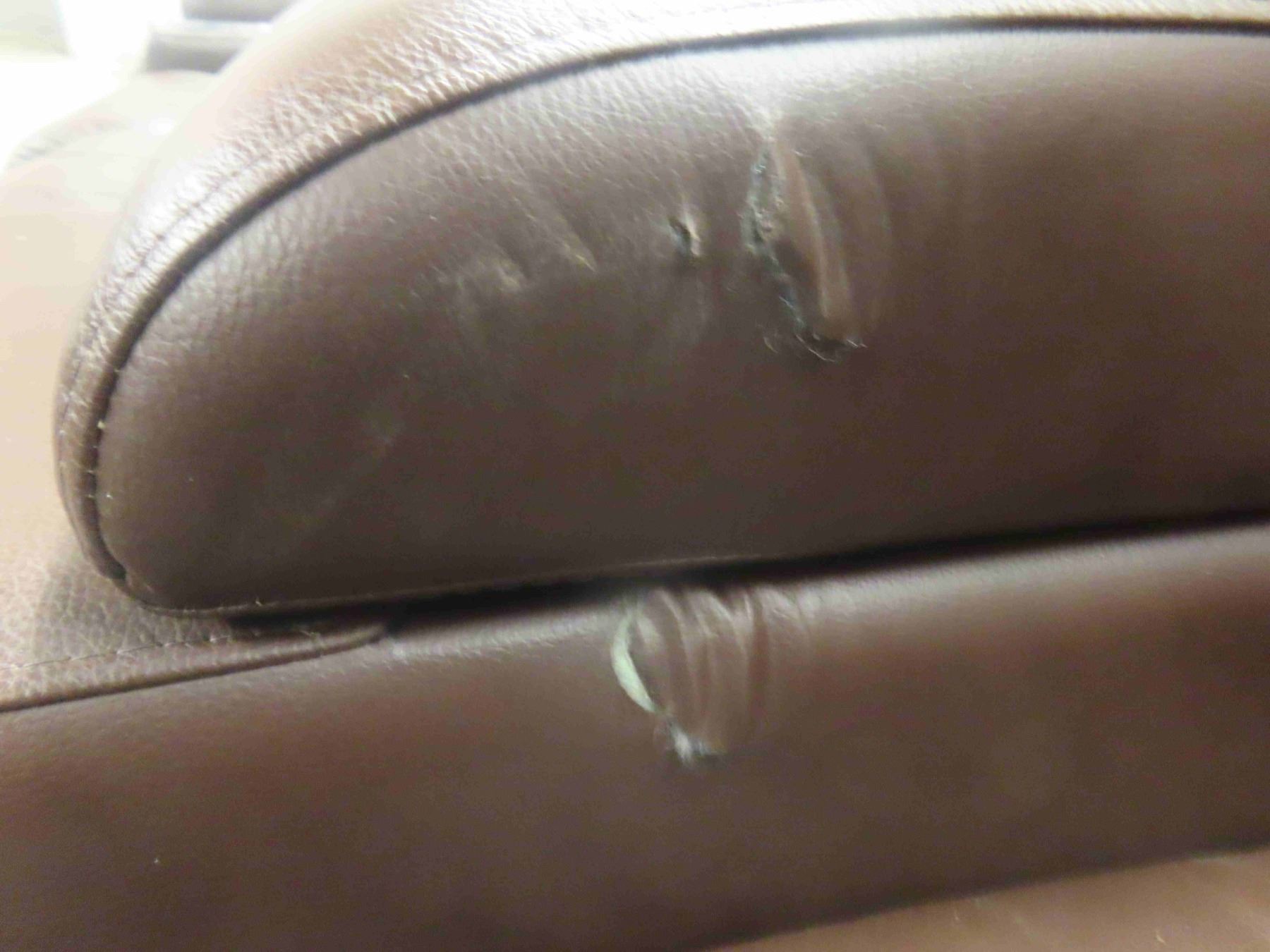 5 pc Leather/ Leather Style Reclining Couch 140" Wide - 1 small tear