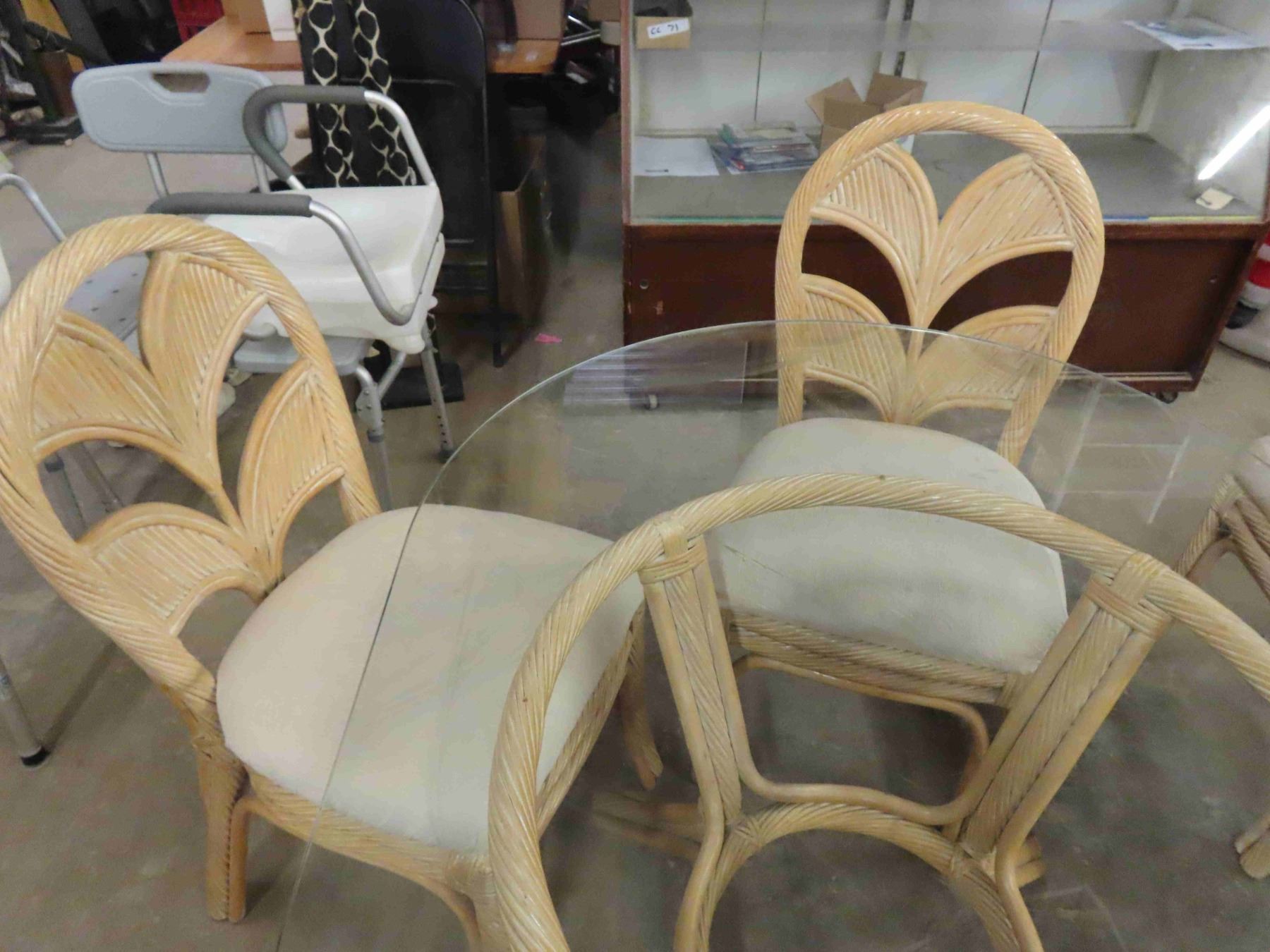5 pc Wicker Patio Set with Cushion Seats - Heavy Glass on Table 27" x 40" x 56"