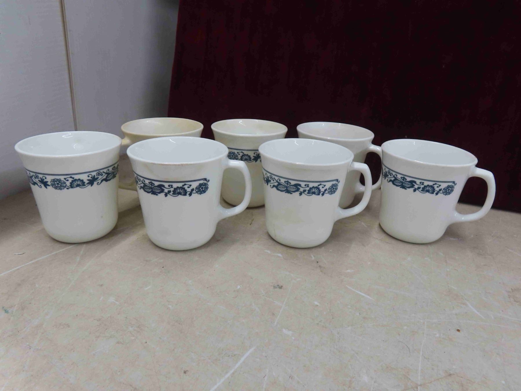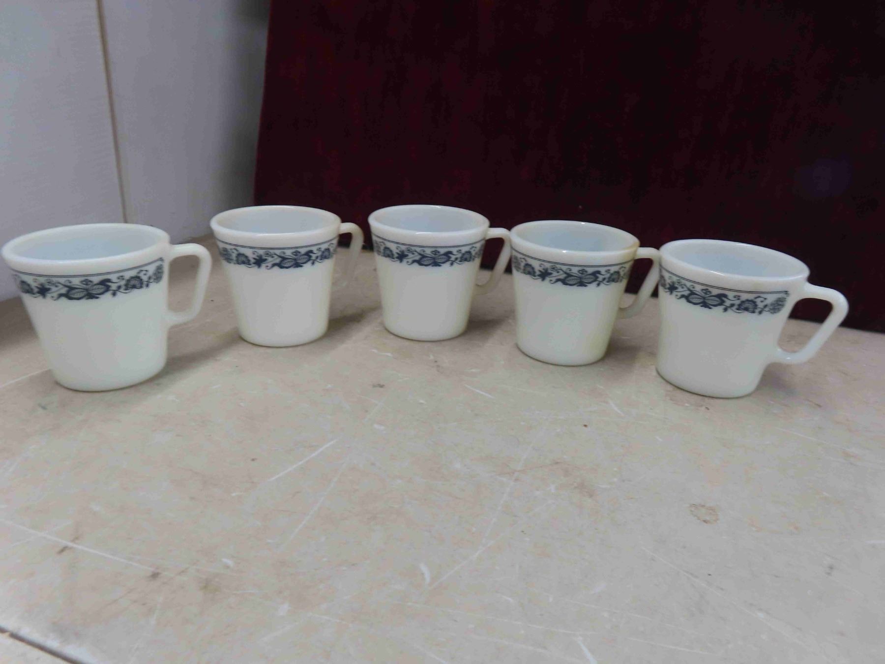 5 pyrex, 7 corningware. Coffee mugs, 2 pyrex measuriiing cups and fireking