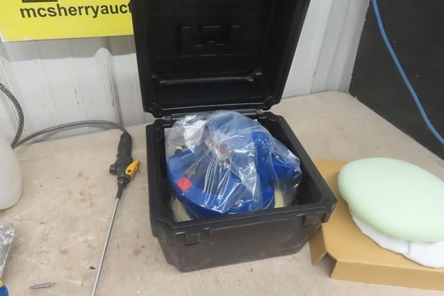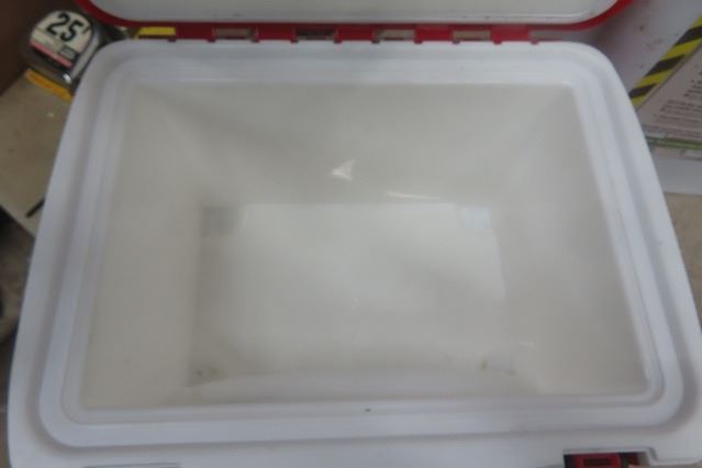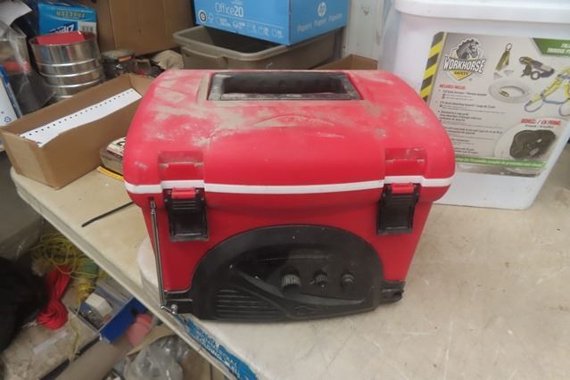 50' Rope with Snap Hook at one End, Simoniz 10  Orbital Polisher - new, Cooler with Radio, Spray