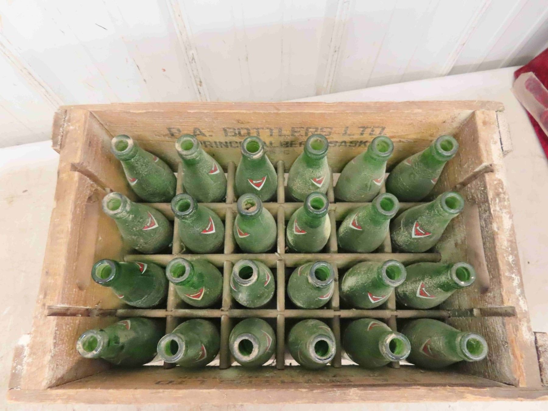 52 Soda Bottles : Stubby , Double Cola , Squeeze Starlite Bottles, Stubby Gingerale & 2 Wood Crates : Coca Cola, Other