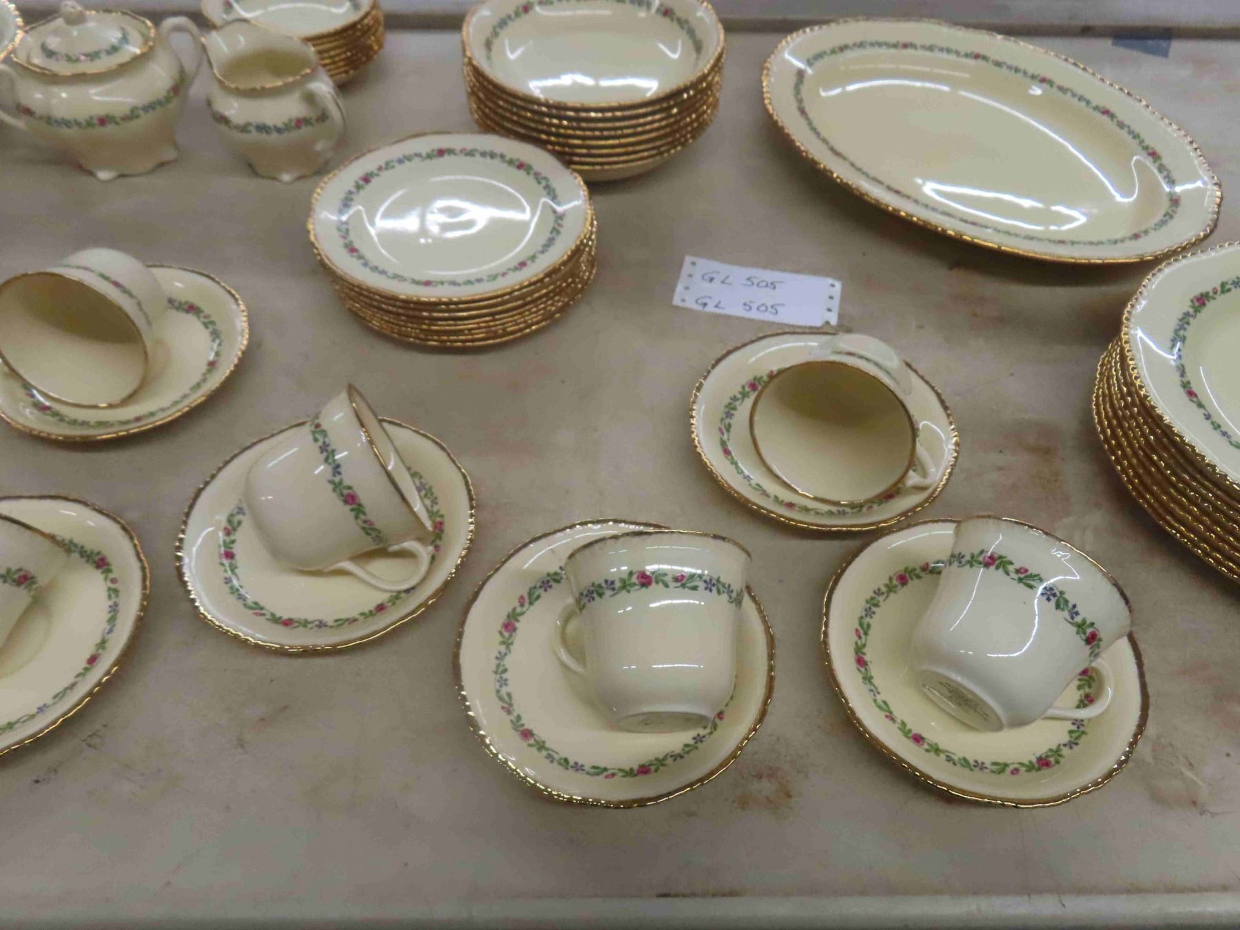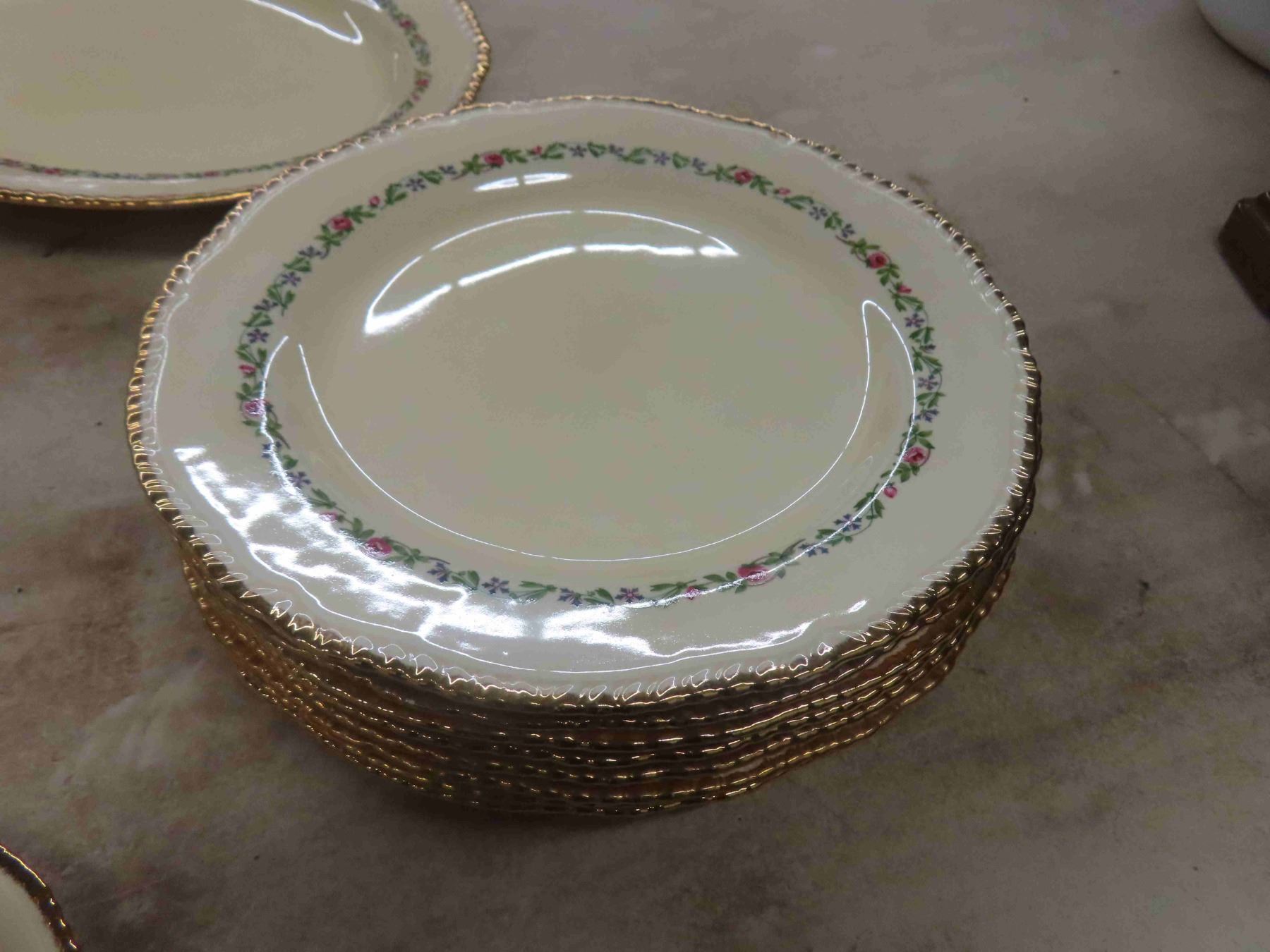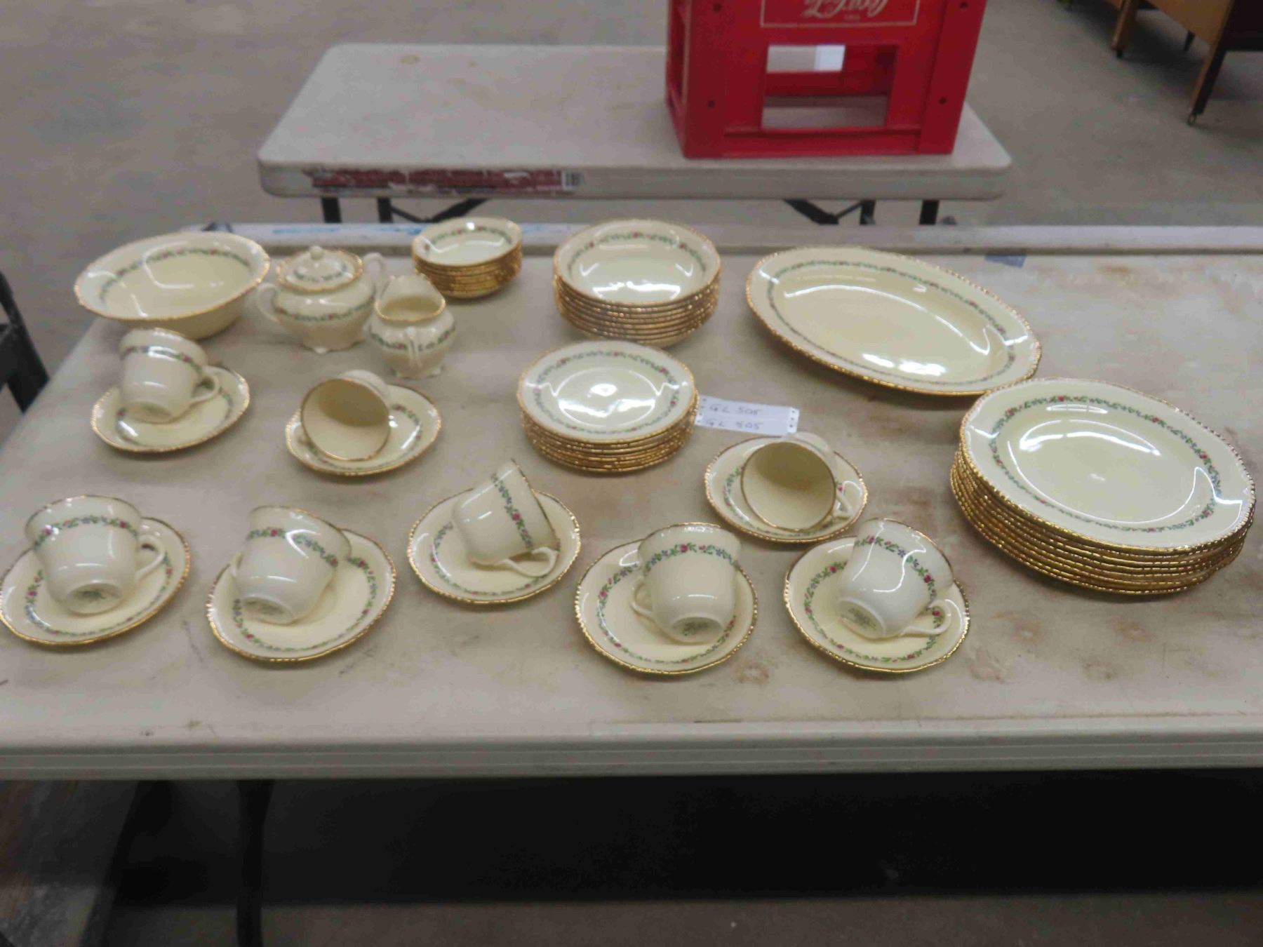 (52) pcs Ridgeway Bone China ; Serving Pieces, Nappies, Bowls, Cups + Saucers, Plates, plus more