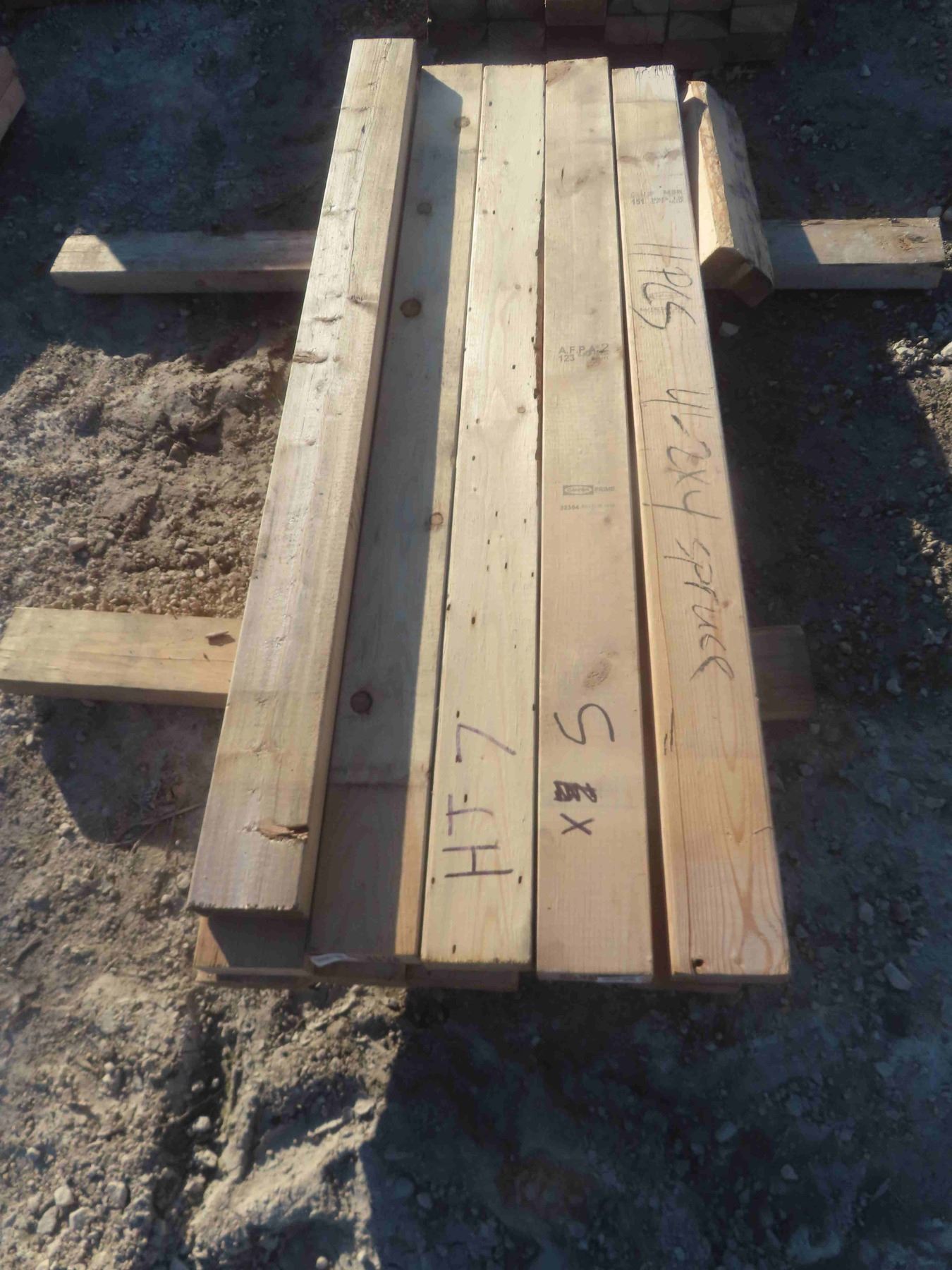 53 Spruce Boards : (8) 2'' x 4'' x 5' , (11) 2'' x 4'' x 4' , (18) 2'' x 4'' x 4' 10'' , (10) 2'' x 4'' x 6' , (6) 2'' x 4'' x 5' 9''