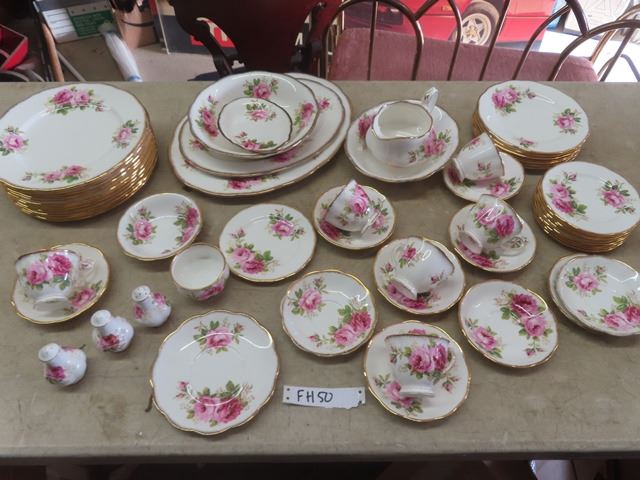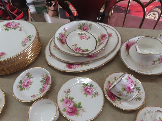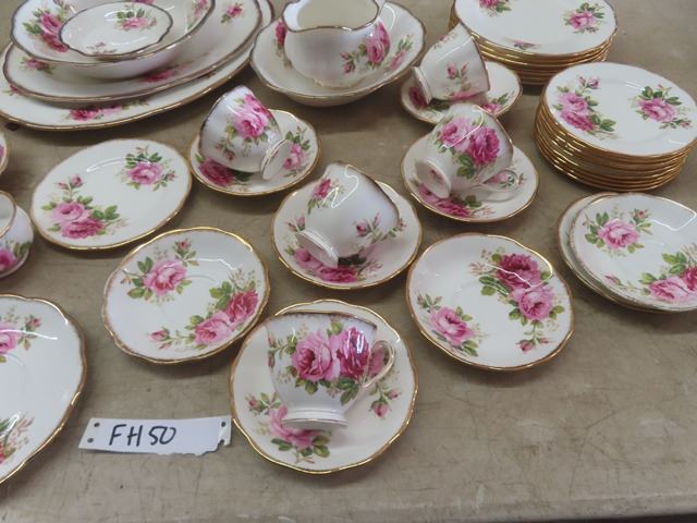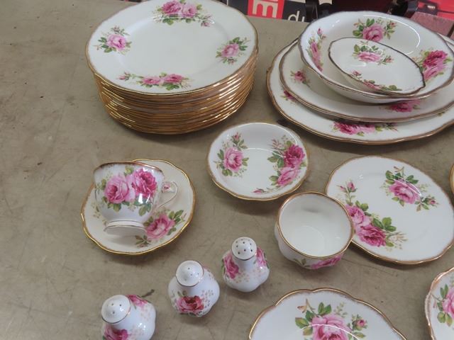 56 pieces Royal Albert " American Beauty' : Cups, Saucers, Plates, Gravy Boat, Platters, Trays plus more