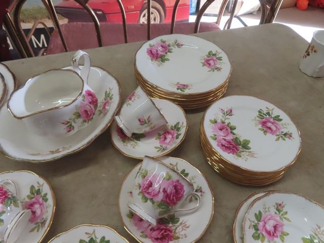 56 pieces Royal Albert " American Beauty' : Cups, Saucers, Plates, Gravy Boat, Platters, Trays plus