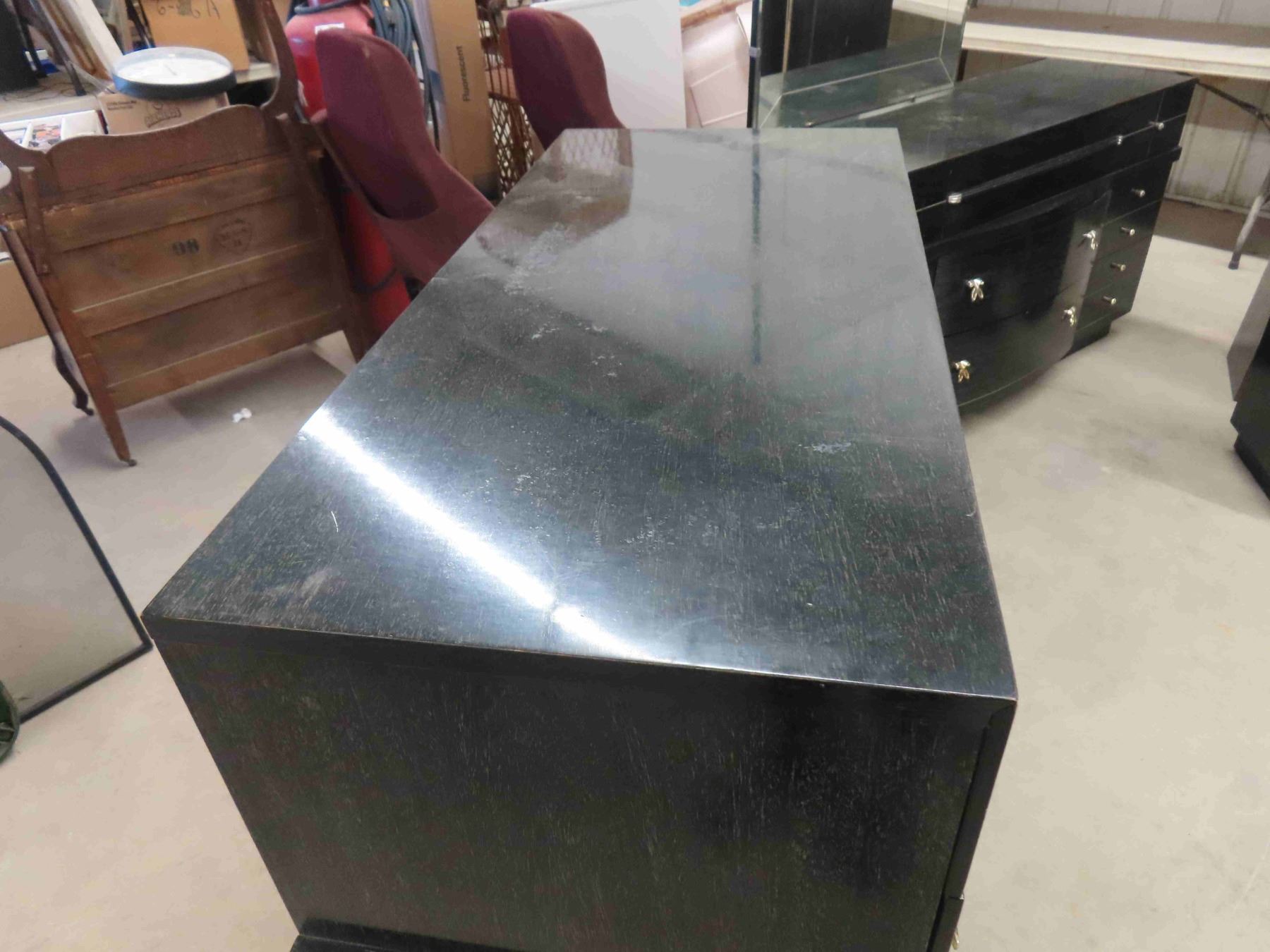 5pc Mid Century Mahogany Bedroom Suite ; Dresser 18" x 32" x 59" plus Mirror 32" x 48", Dresser 18" x 39" x 43" , Night Table 15" x 20" x 24", Bed is 50" wide