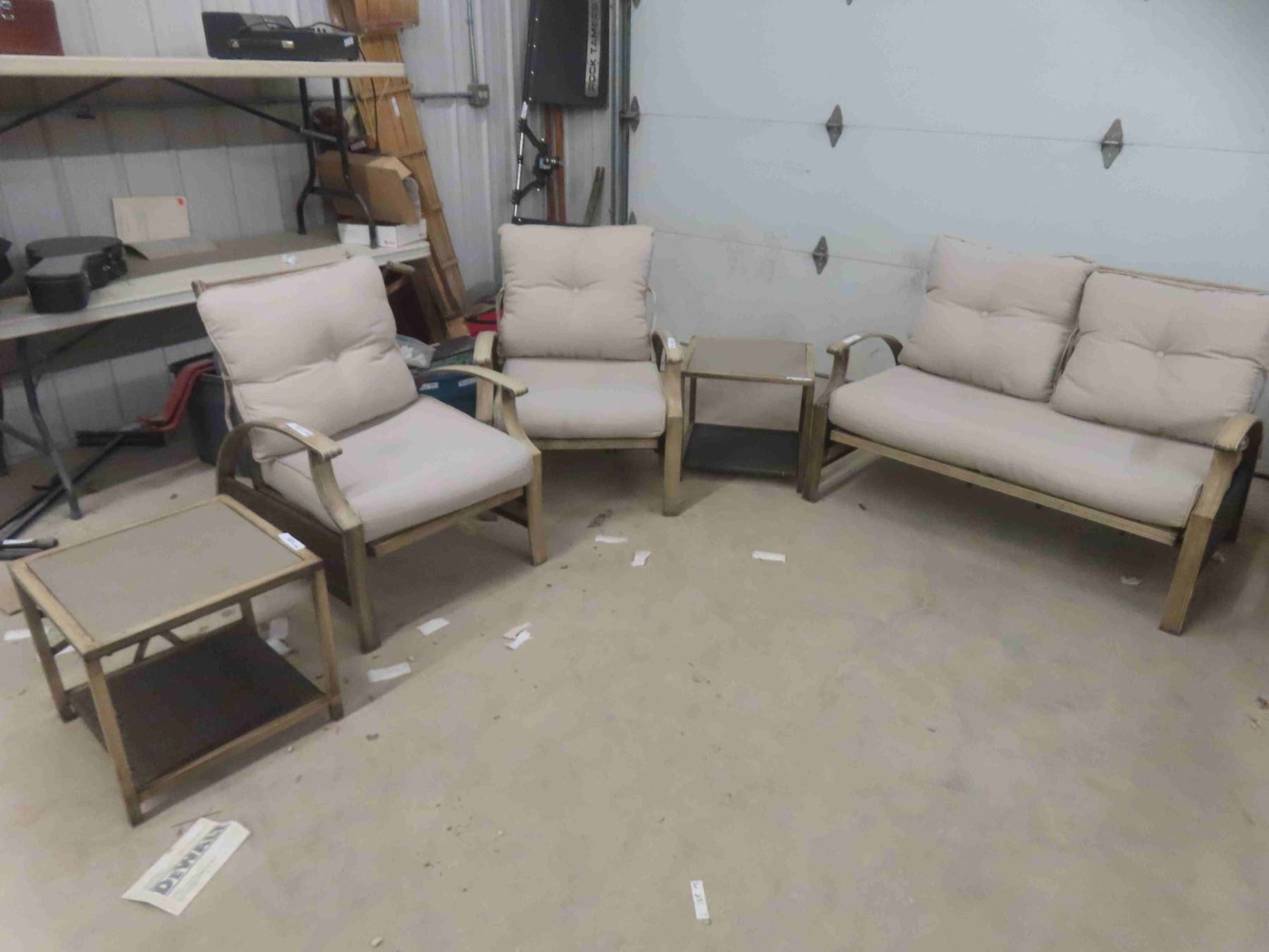 5pce Patio Set : Seatee 51'' W , 2 Stands 18'' x 20'' x 20'' , 2 Chairs