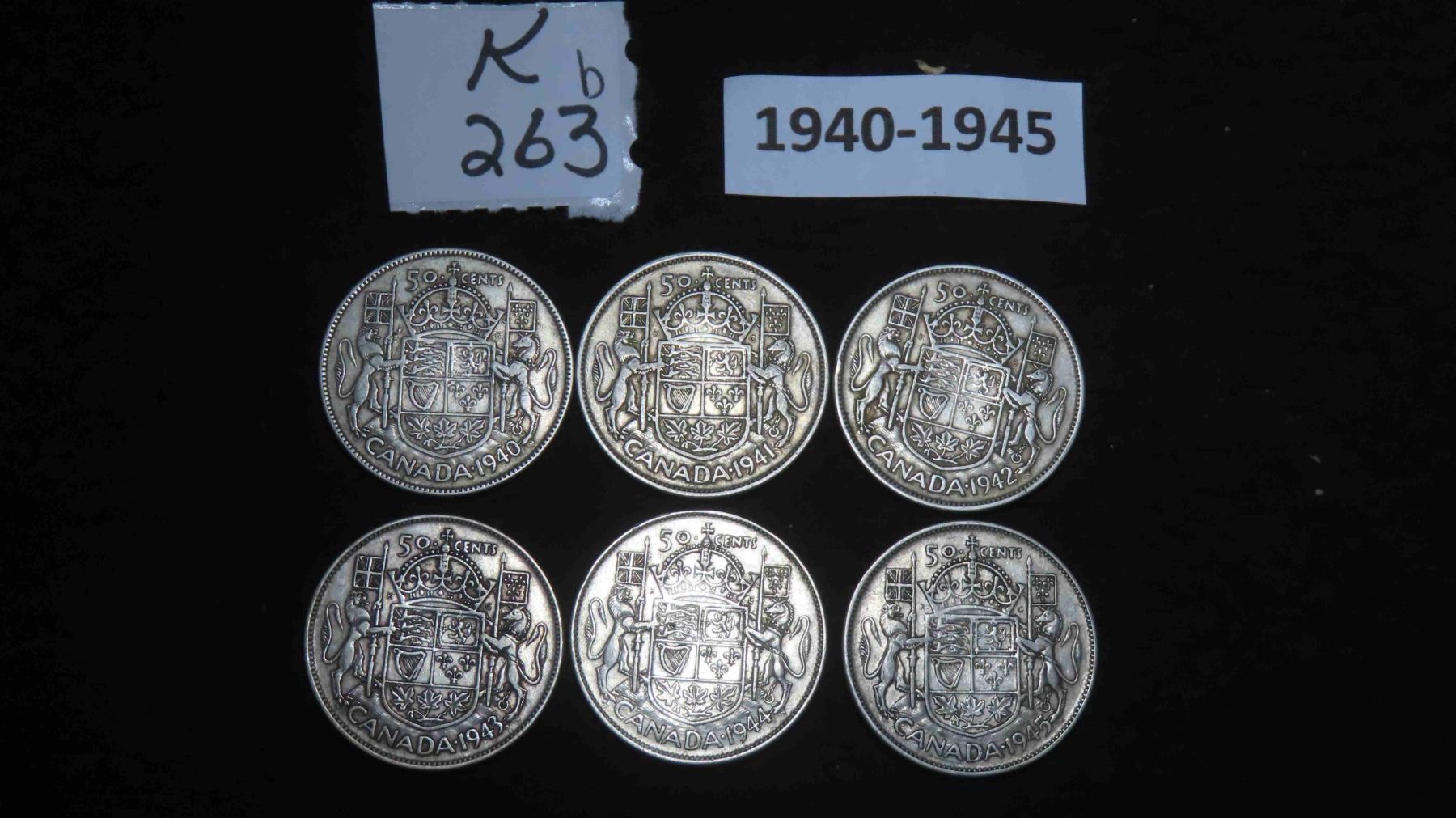 (6) 1940-1945 Canadian 50 Cent Coins