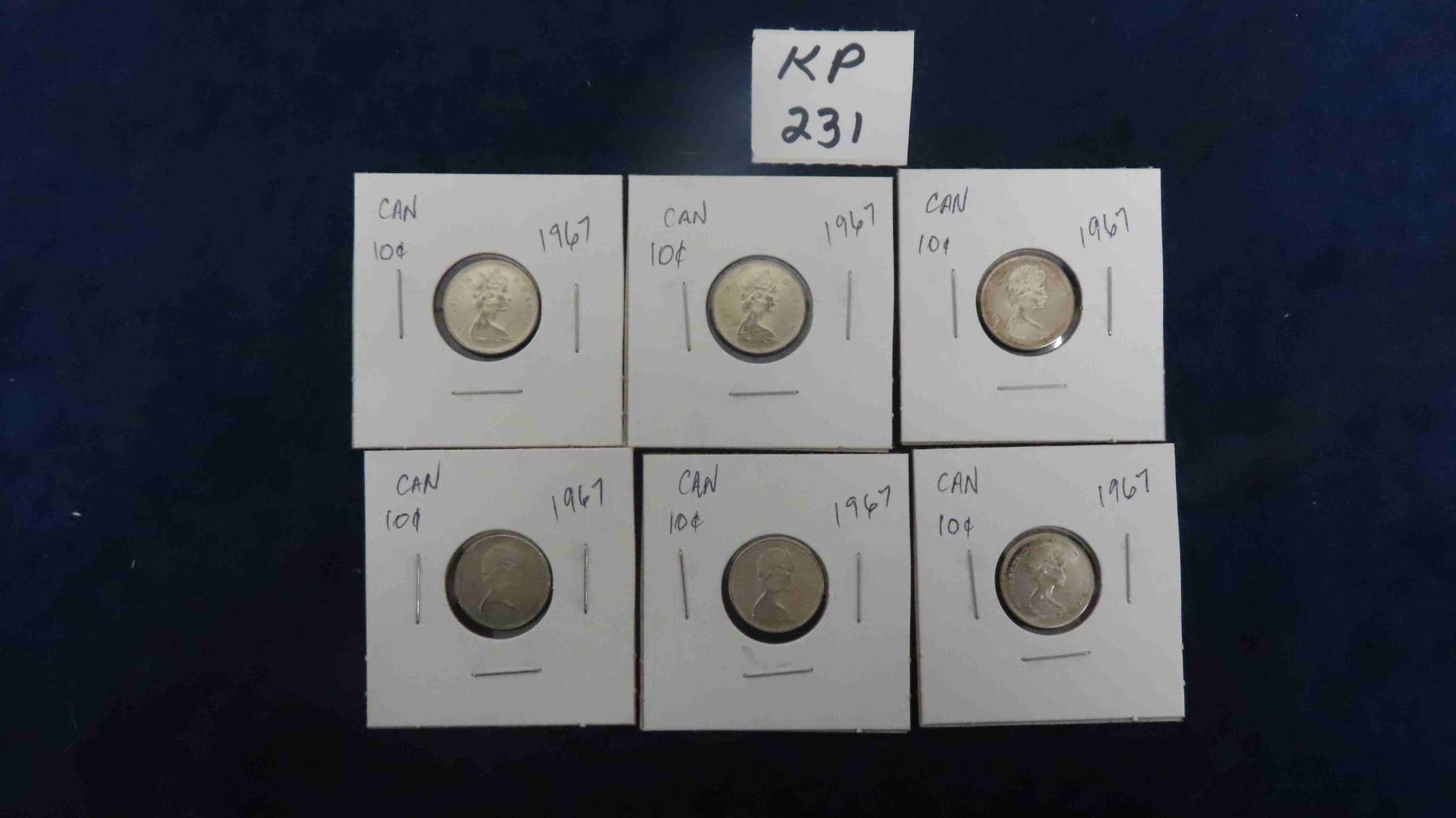 (6) 1967 Canada Silver Centennial 10 Cent Coins