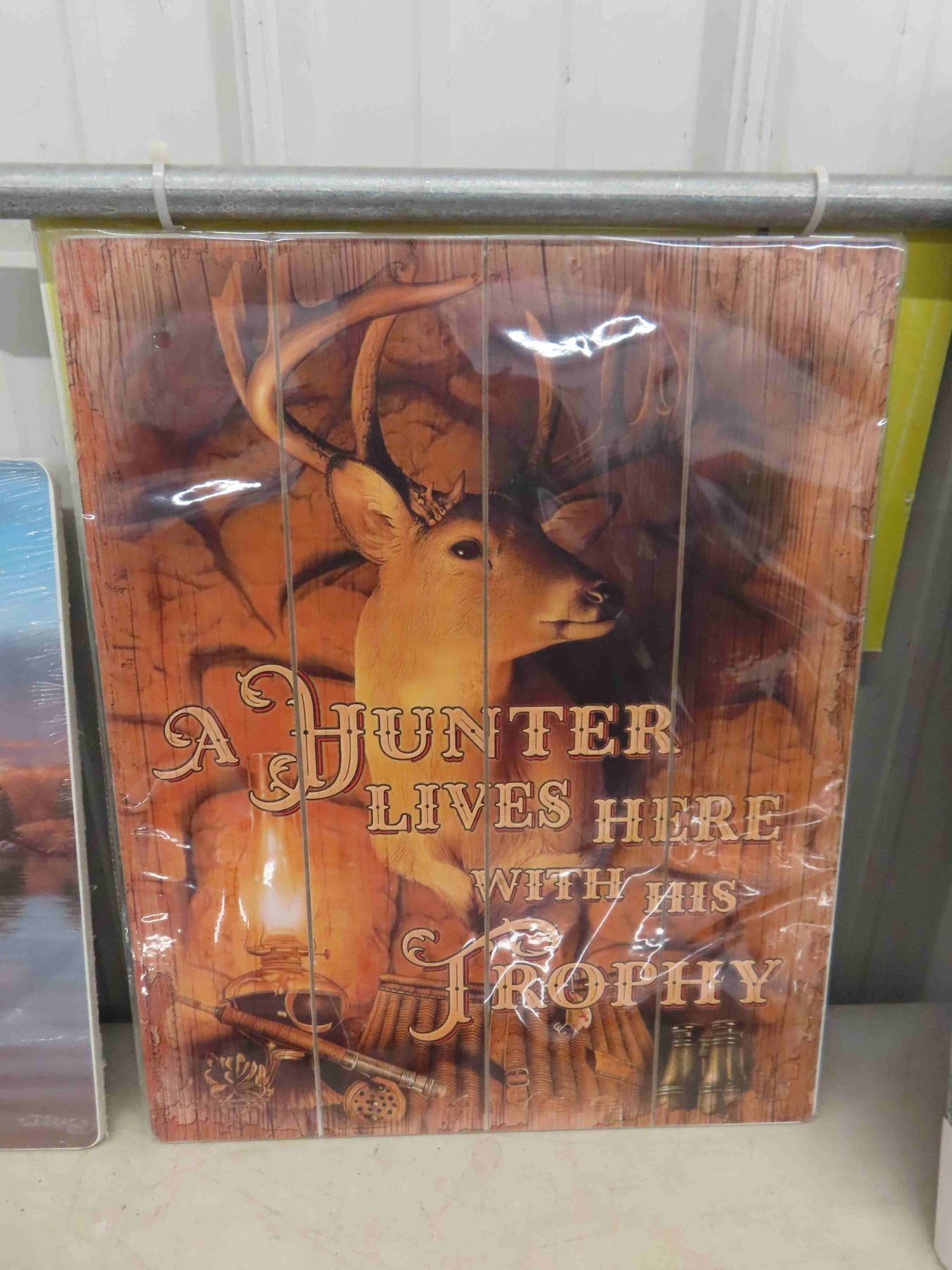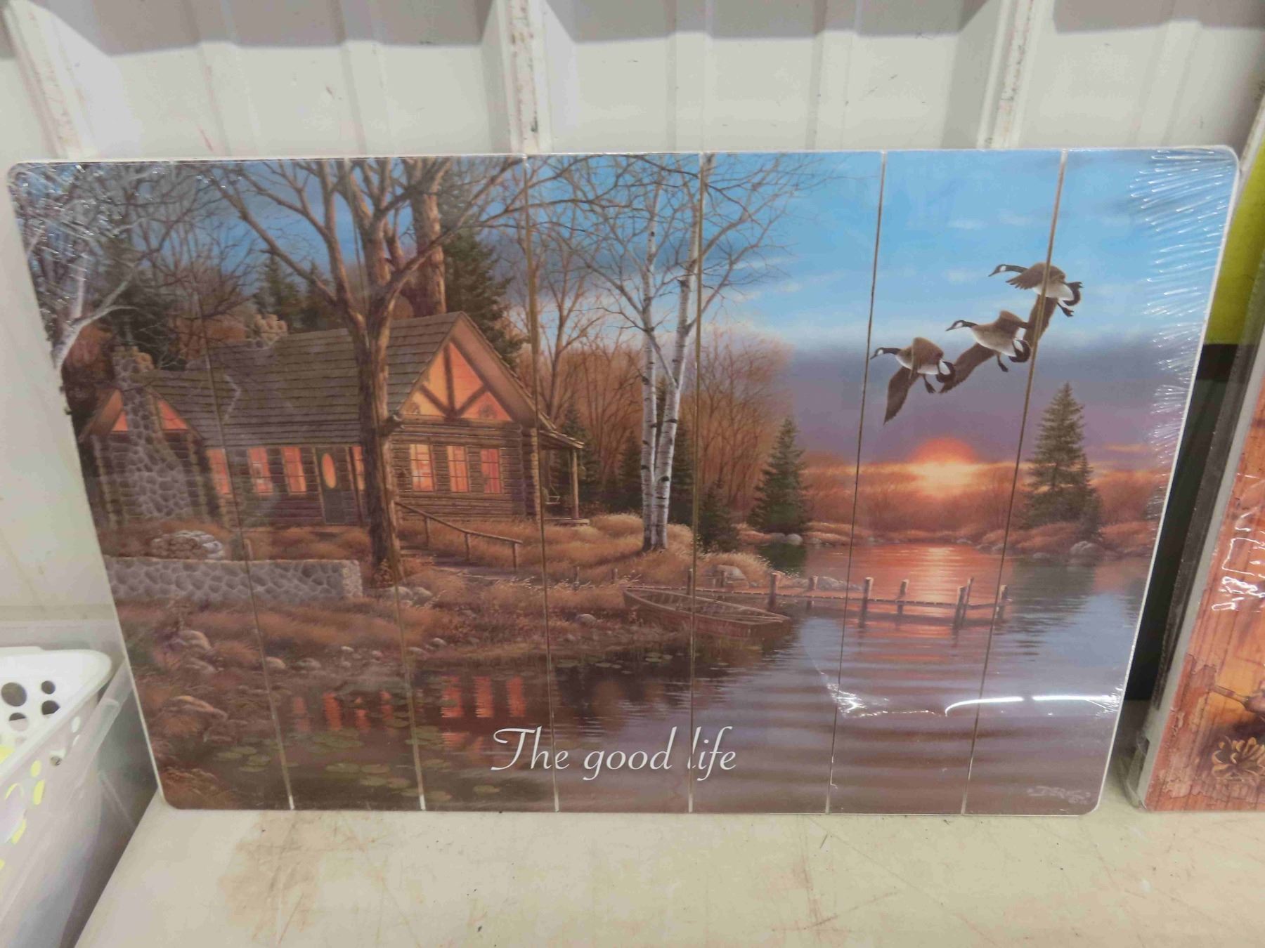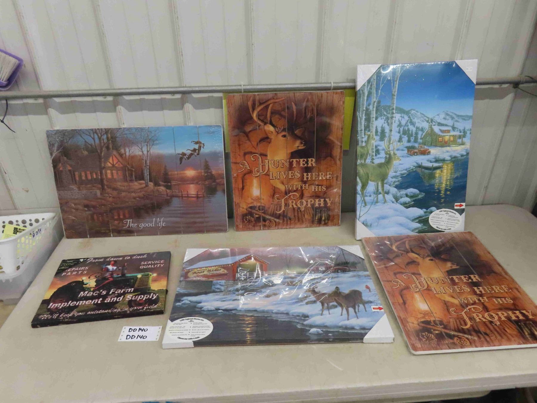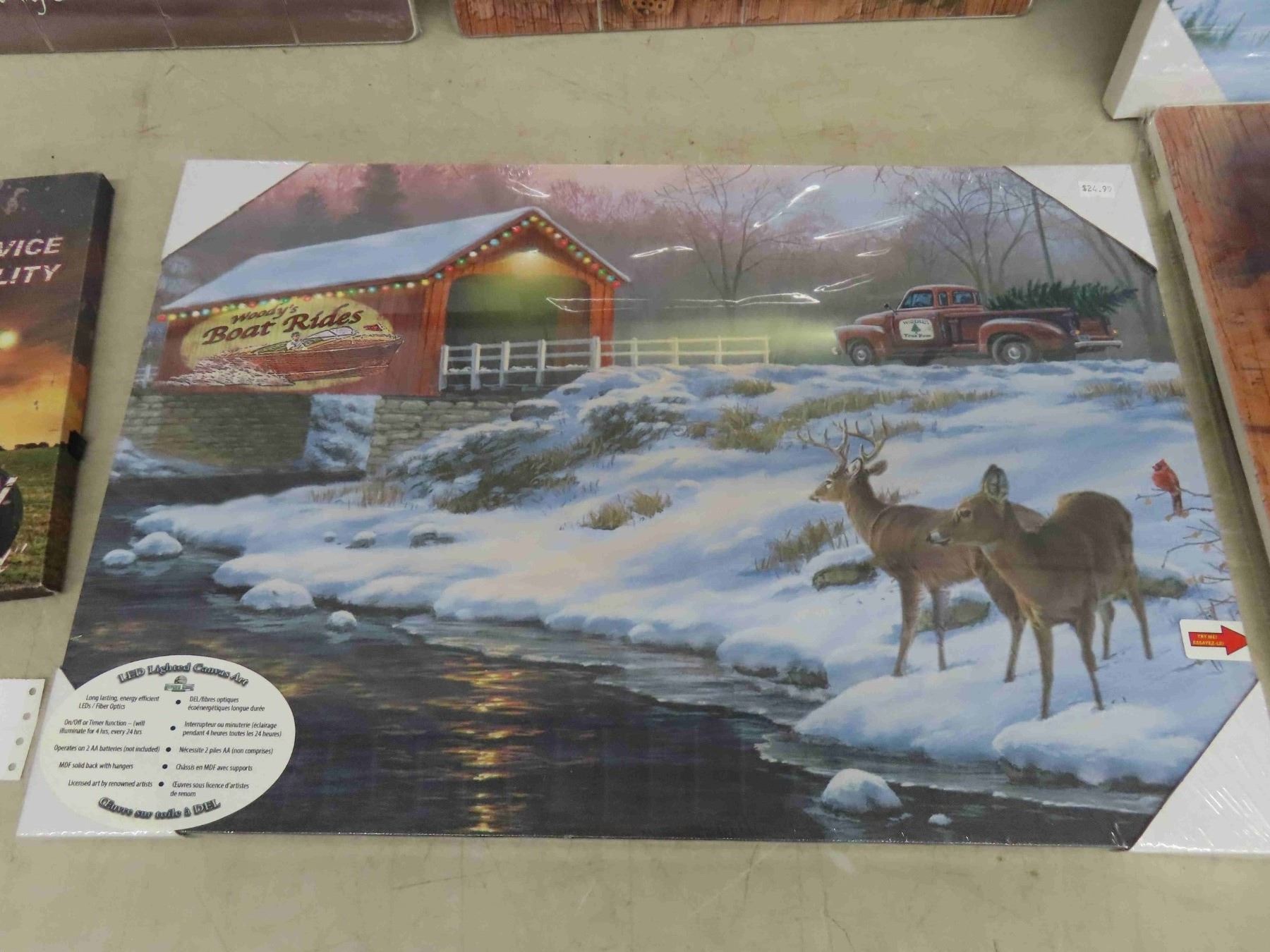 6 Assorted Wall Art Items - Some Painted Hardboard, Several Canvas, Some Have LED Lights - Largest 16" x 24" - Perfect for Cottage or Man Cave Décor - All New