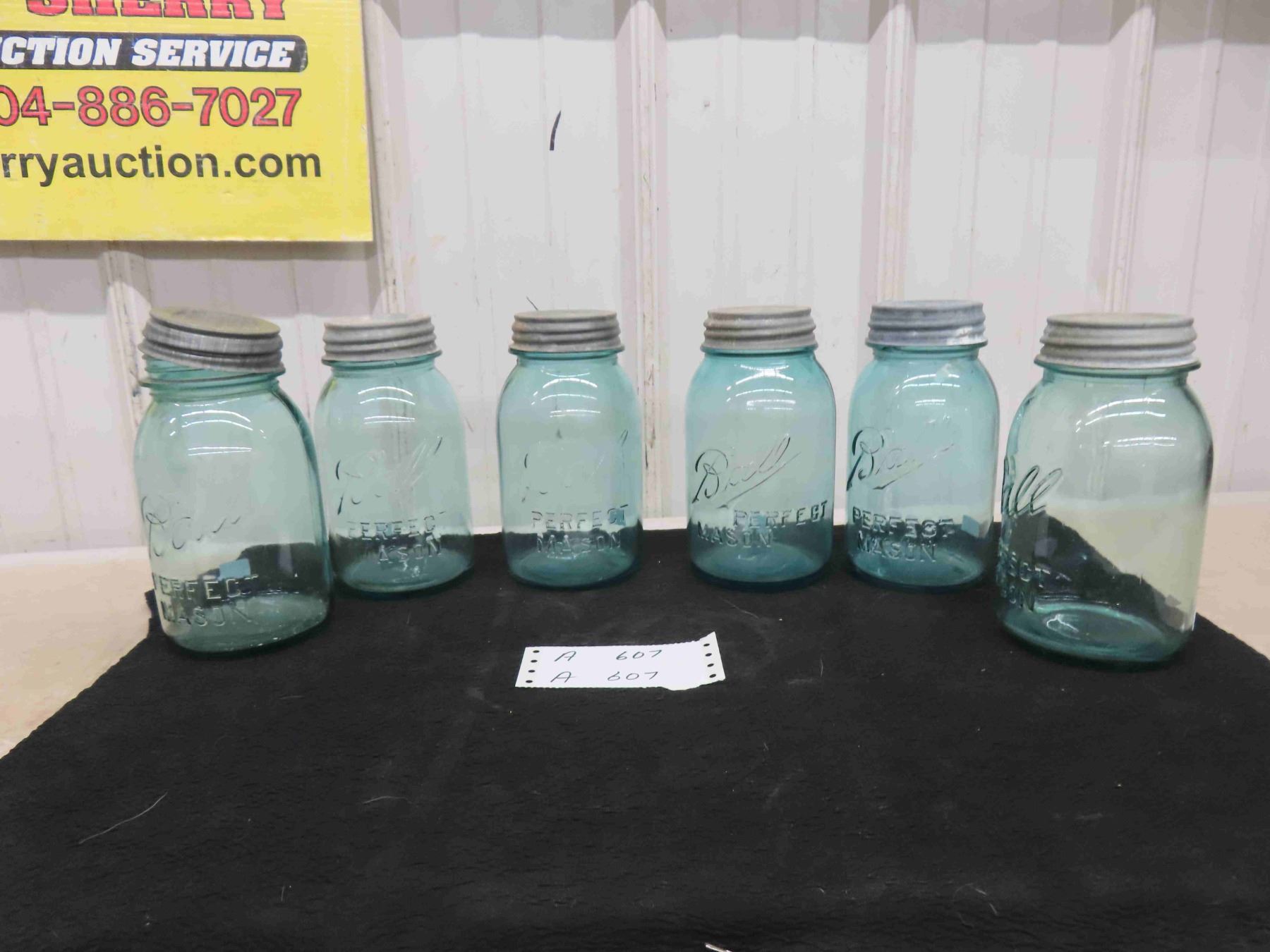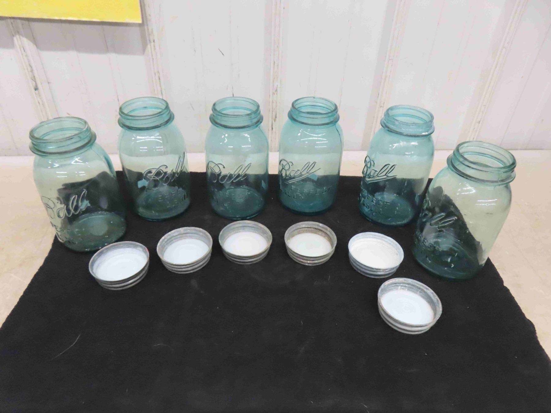 6 'Ball' Blue Tinted Mason Jars with Lids