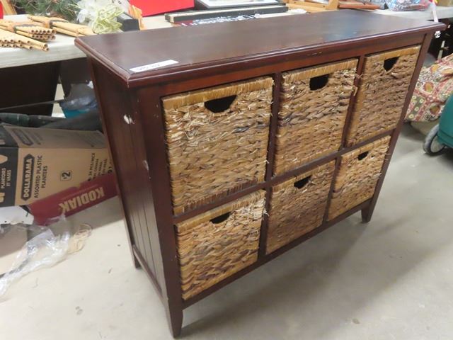 6 Bin Wicker Storage Cabinet 14.5" x 32"x 39"