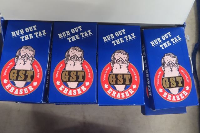 6 Boxes of 24 Brian Mulroony Rub Out The Taxes Erasers - New Old Stock