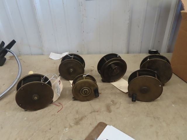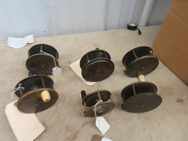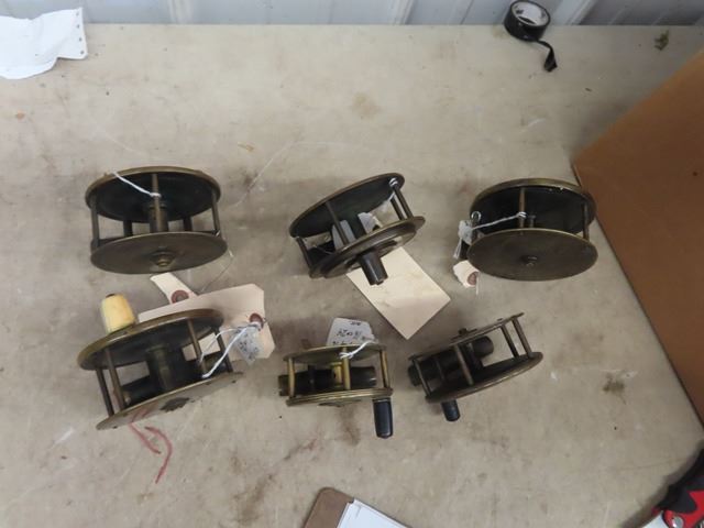 6 Brass Fly Reel - Vintage - 1) Anderson & Sons Princess St. - 2 Are Labelled  But Hard to Read - Shown in Last picture - 3 Have no Markings