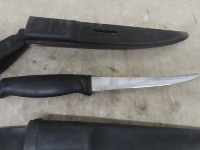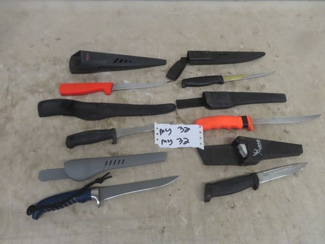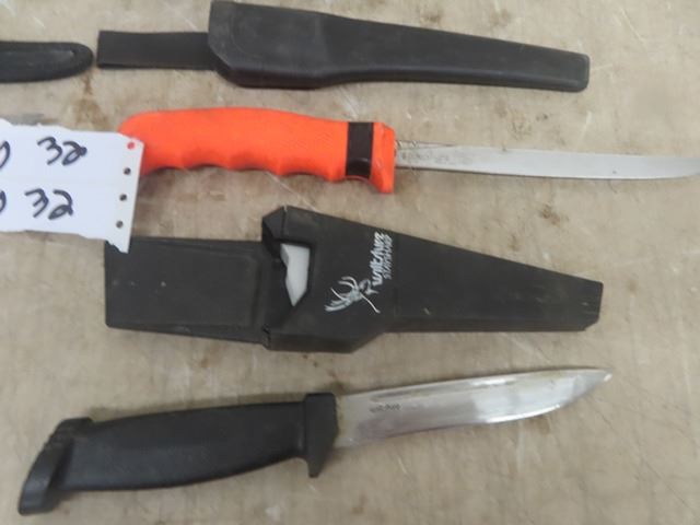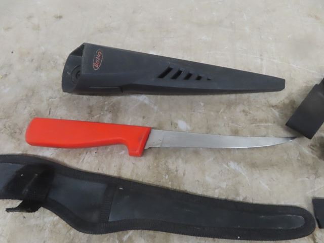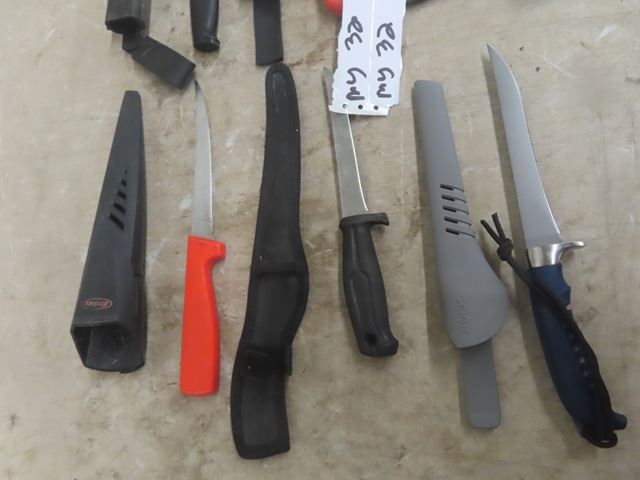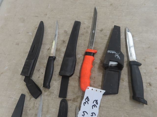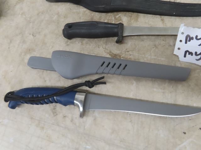 6 Butcher Knives with Holsters , Blue Handled is a Buck , Berkley