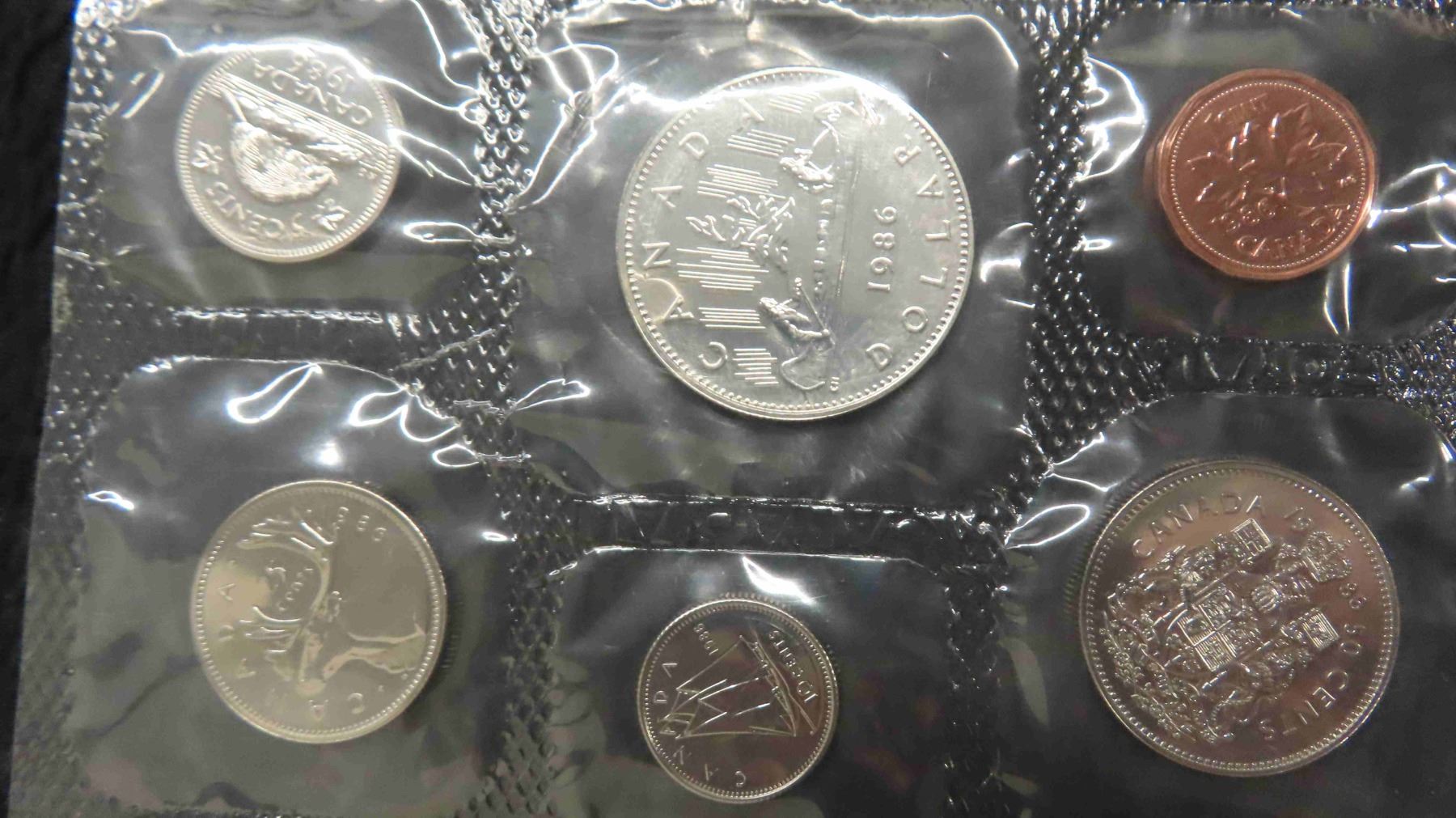 6 Canadian Coin Sets ; (1) 2000 Tiny Treasures + (1) O Canada 150 Years 2017 + (1) Wedding Gift Set 2005 + (1) Baby Gift Set 2005 + (1) 1967 - 1992 Set + (1) 1986 Set