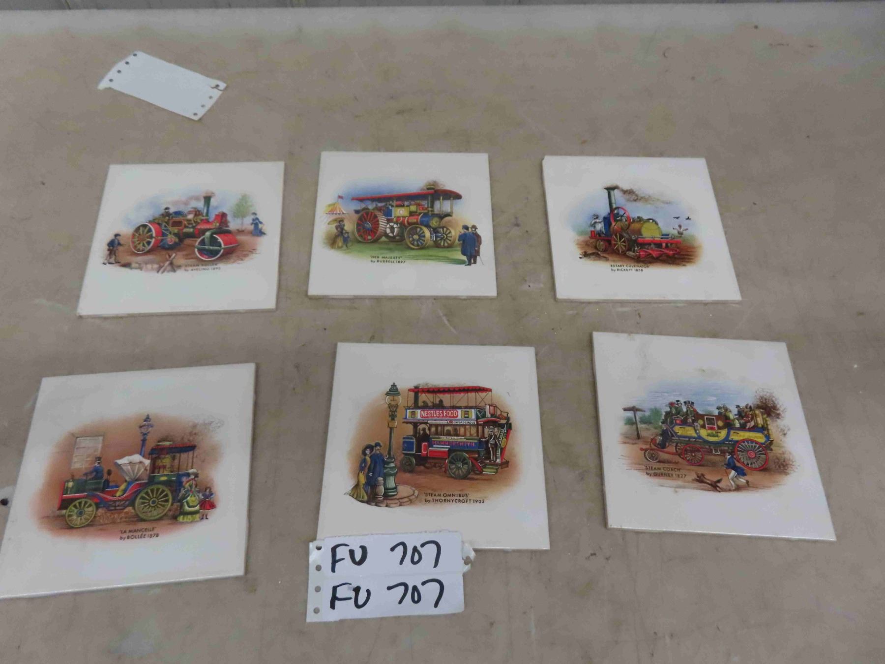 6 Ceramic Tiles with Auto / Tractor Design 6'' x 6''