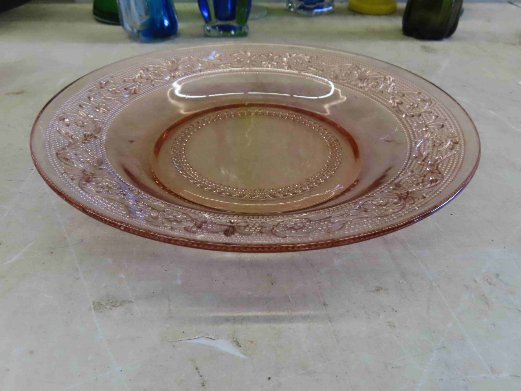 6 Colourful Art Glass Vases , 2 Small Oil Lamps , 1 Piece Pink Depression