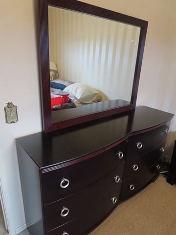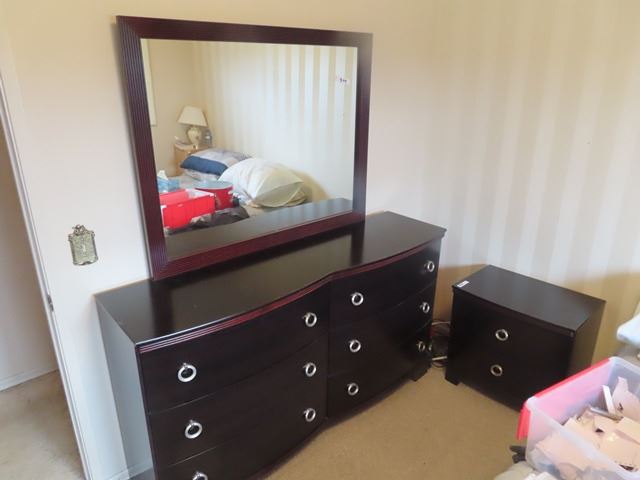 6 Drawer Dresser w Matching Night Table Dresser is 35" H x 63"W x 17" H - Mirror is 36" x 46" , Nigh
