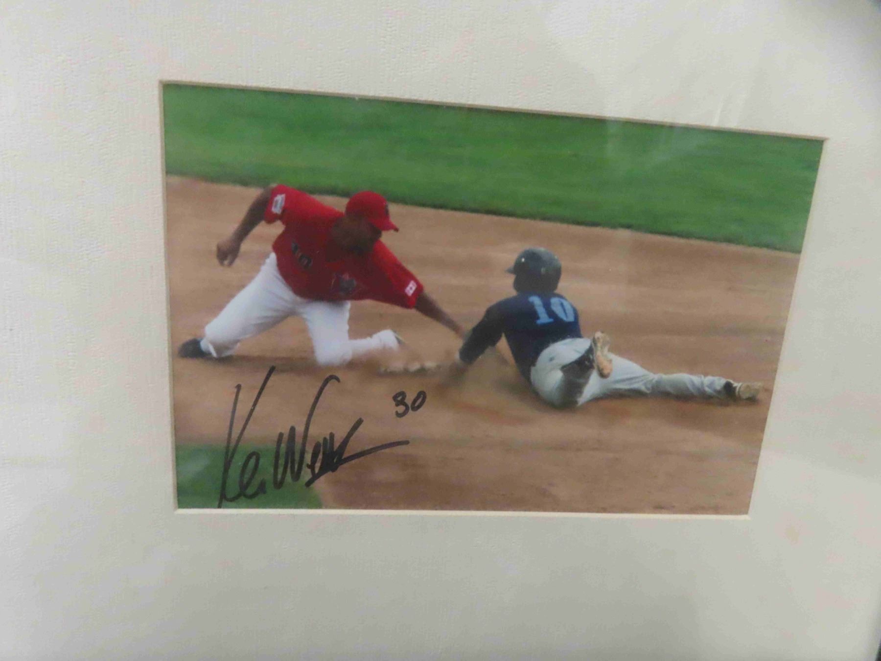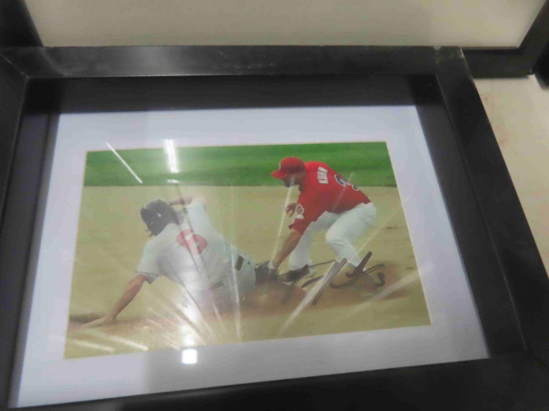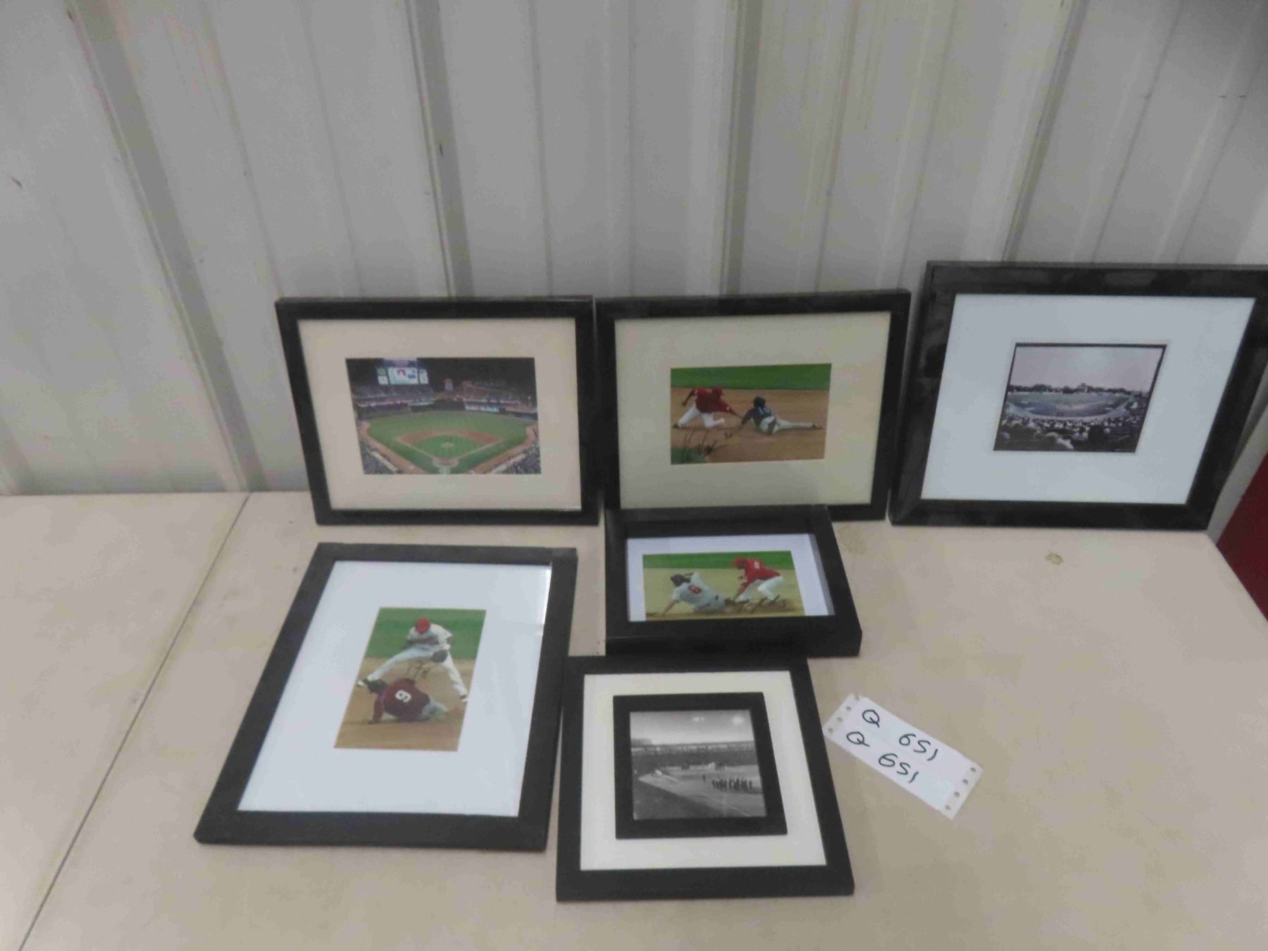 6 Framed Baseball Player / Stadium Photos , Some with Autographs, Biggest is 11 1/2'' x 5 1/2''