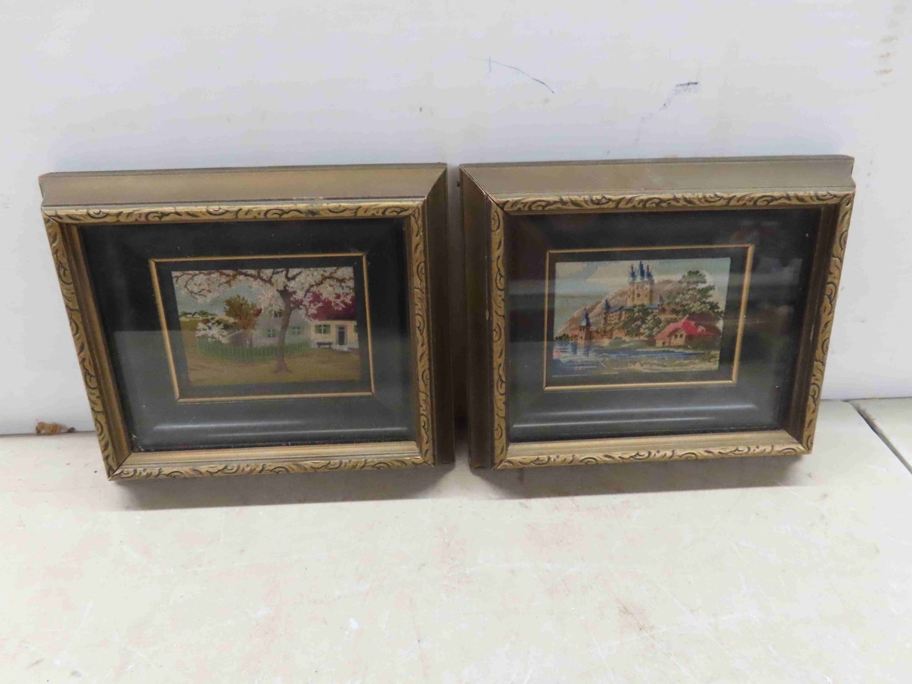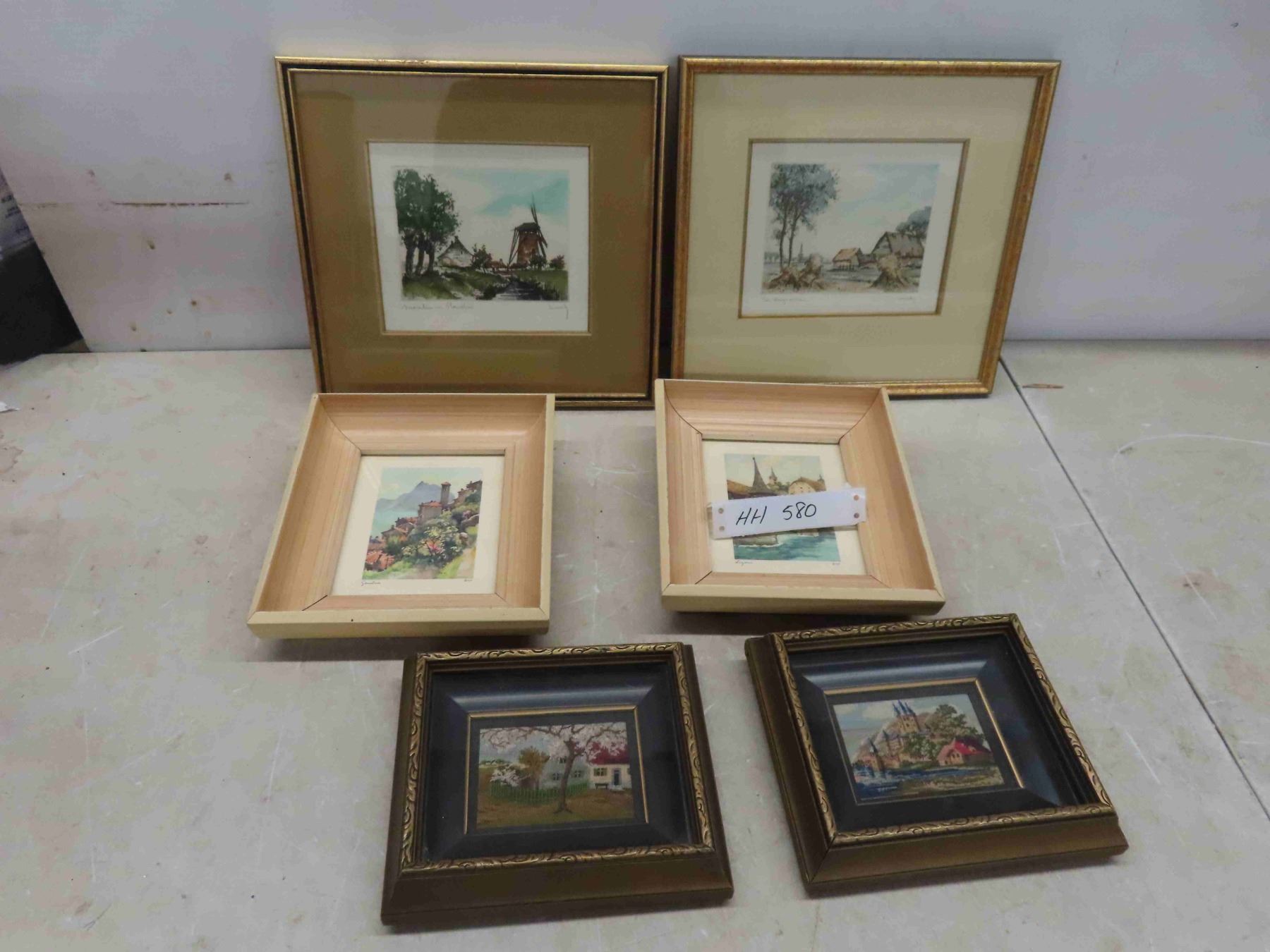 6 Framed Pictures Including 2 Petit Point, Largest is 10'' x 10''