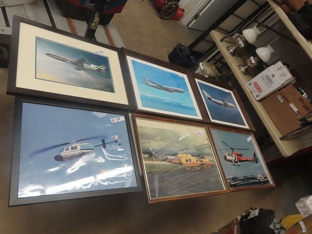 6 Framed Pictures of Planes & Helicopters - Biggest 20" x 26"