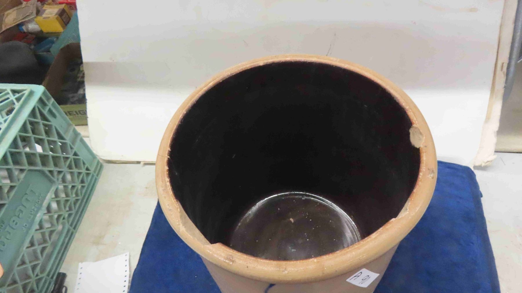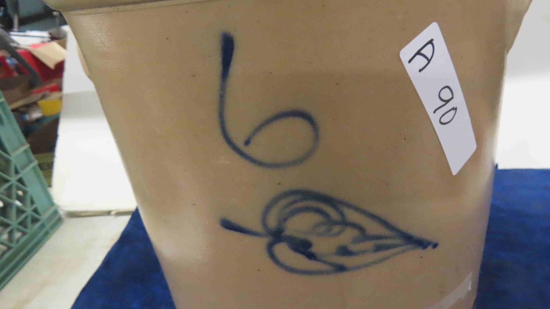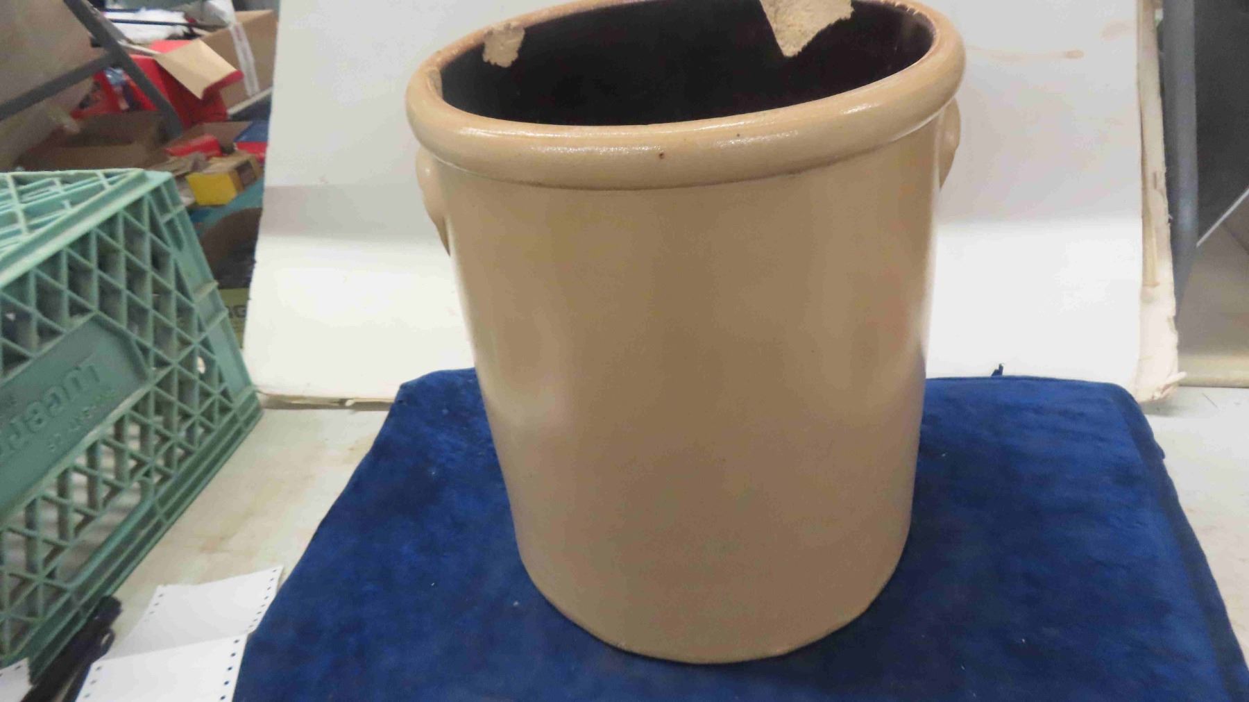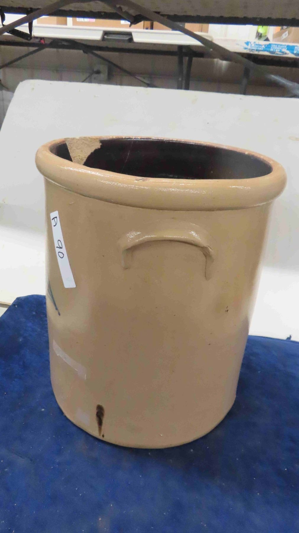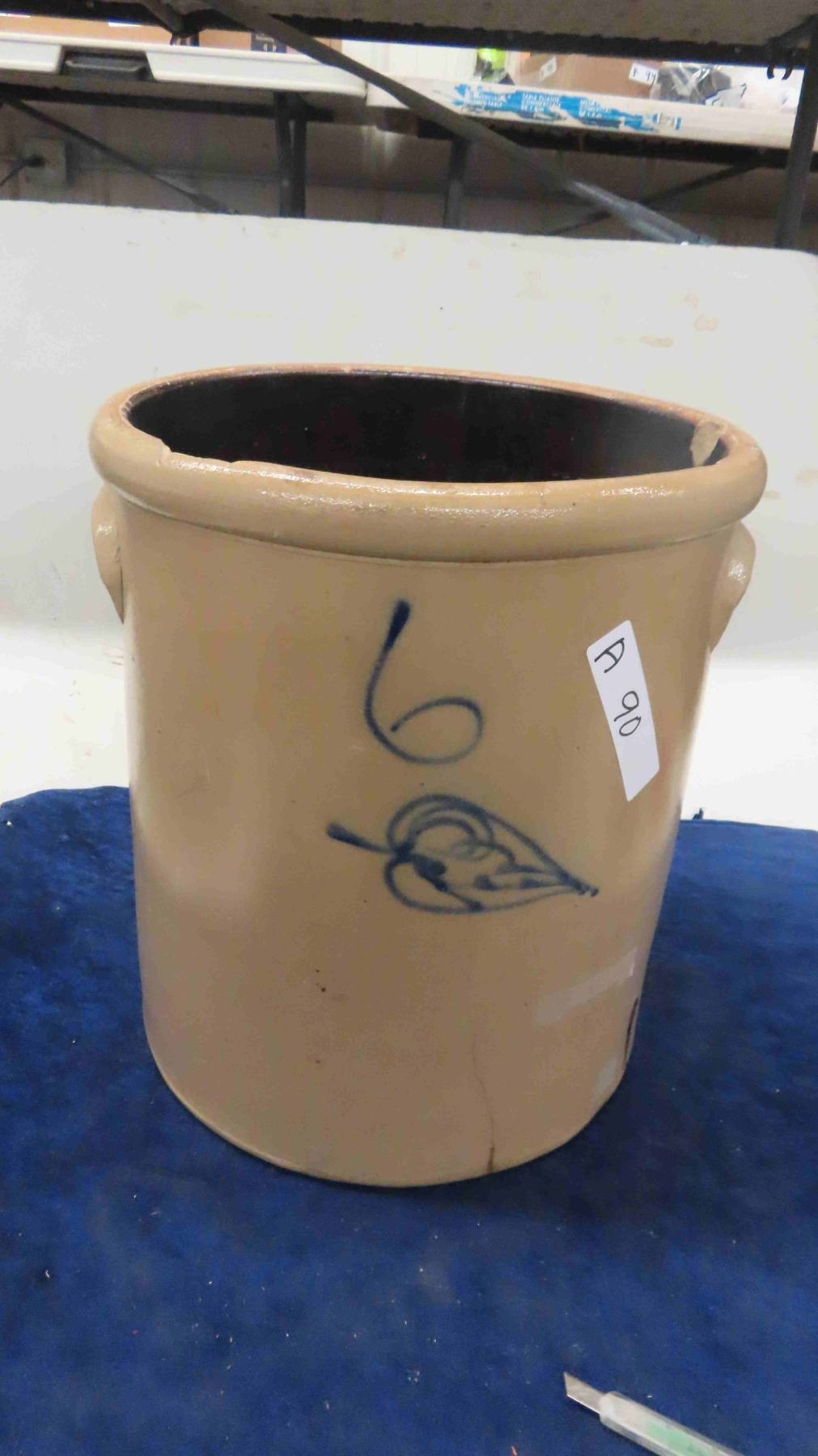 6 Gal Salt Glazed Crock - Has Chips + Cracks - Very Old