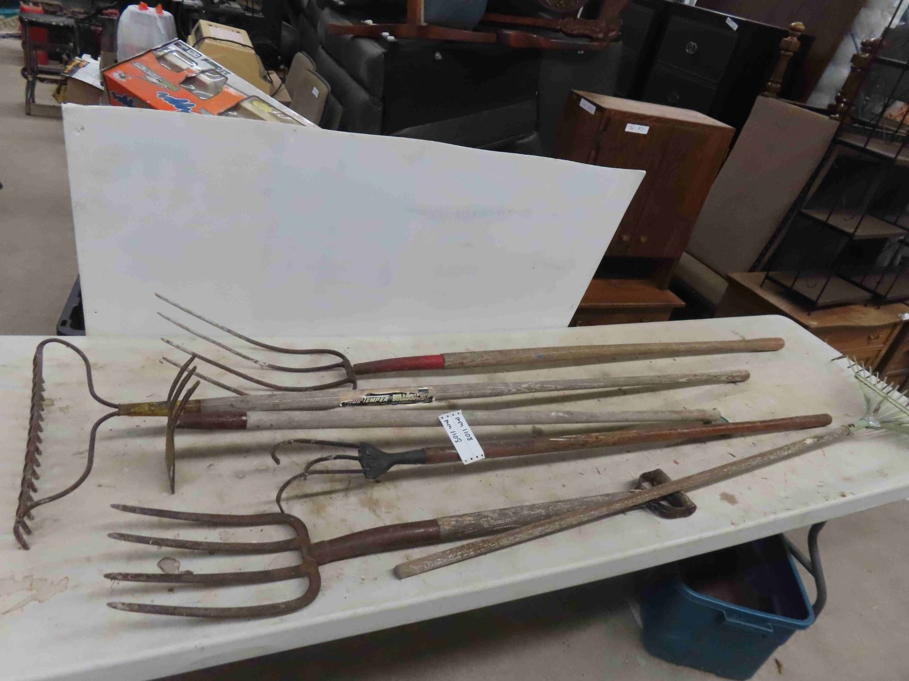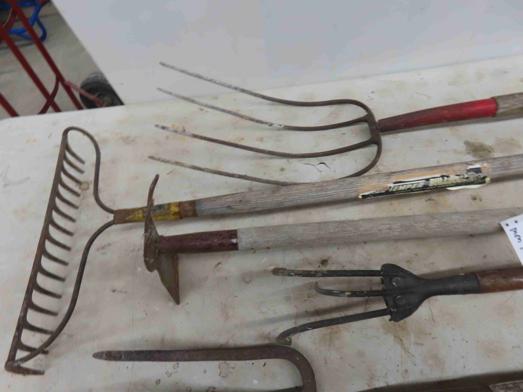 6 Hand Yard Tools : Rakes, Forks, Scuffler