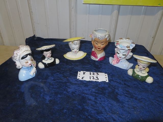 6 Head Vases, Approx 4.5" -5.5" Tall