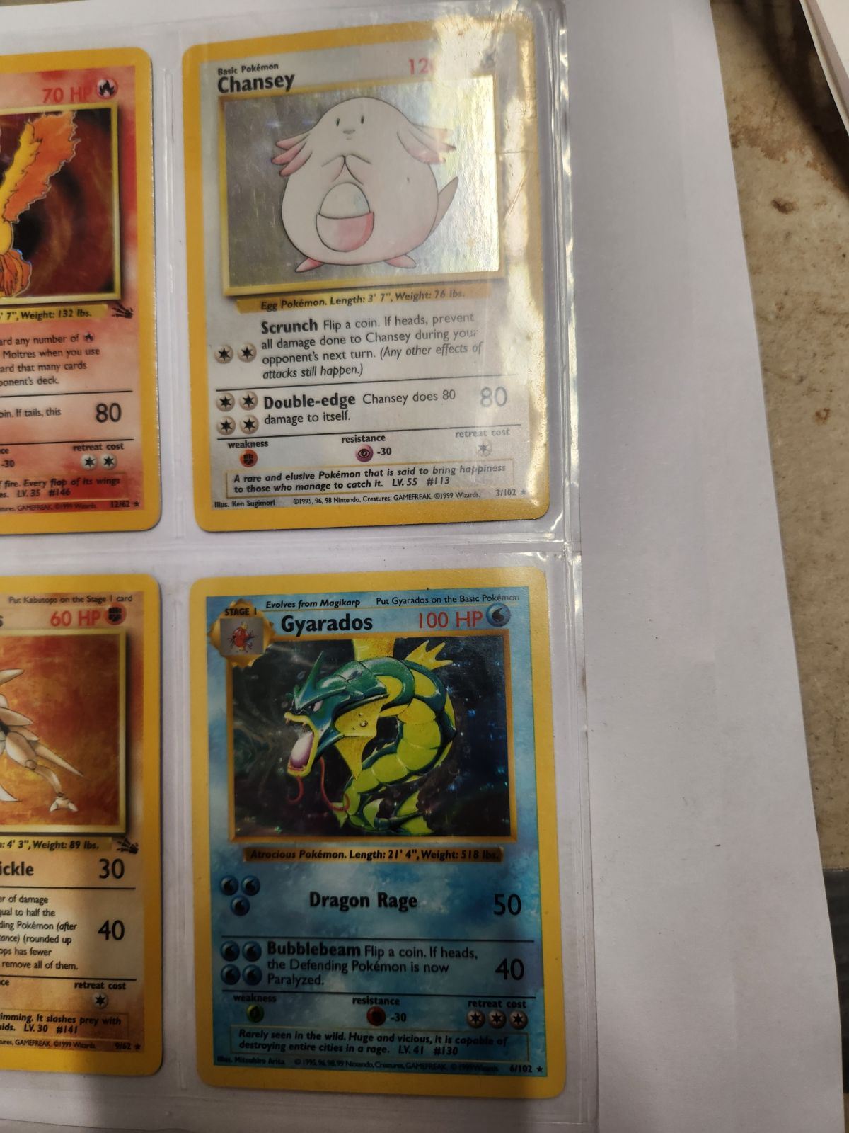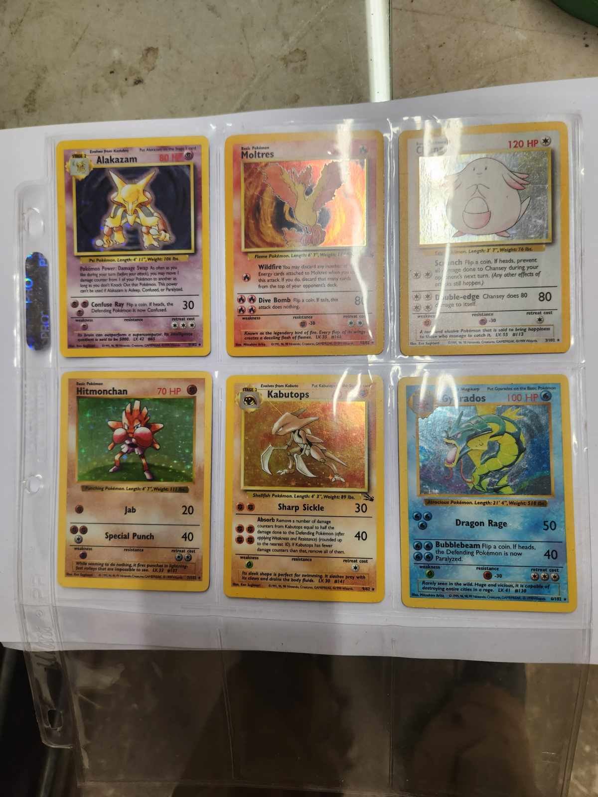 6 Holo Pokemon Cards: Alakazam, Moltres, Chaney, Hitomonchan, Kabutops, Gyarados