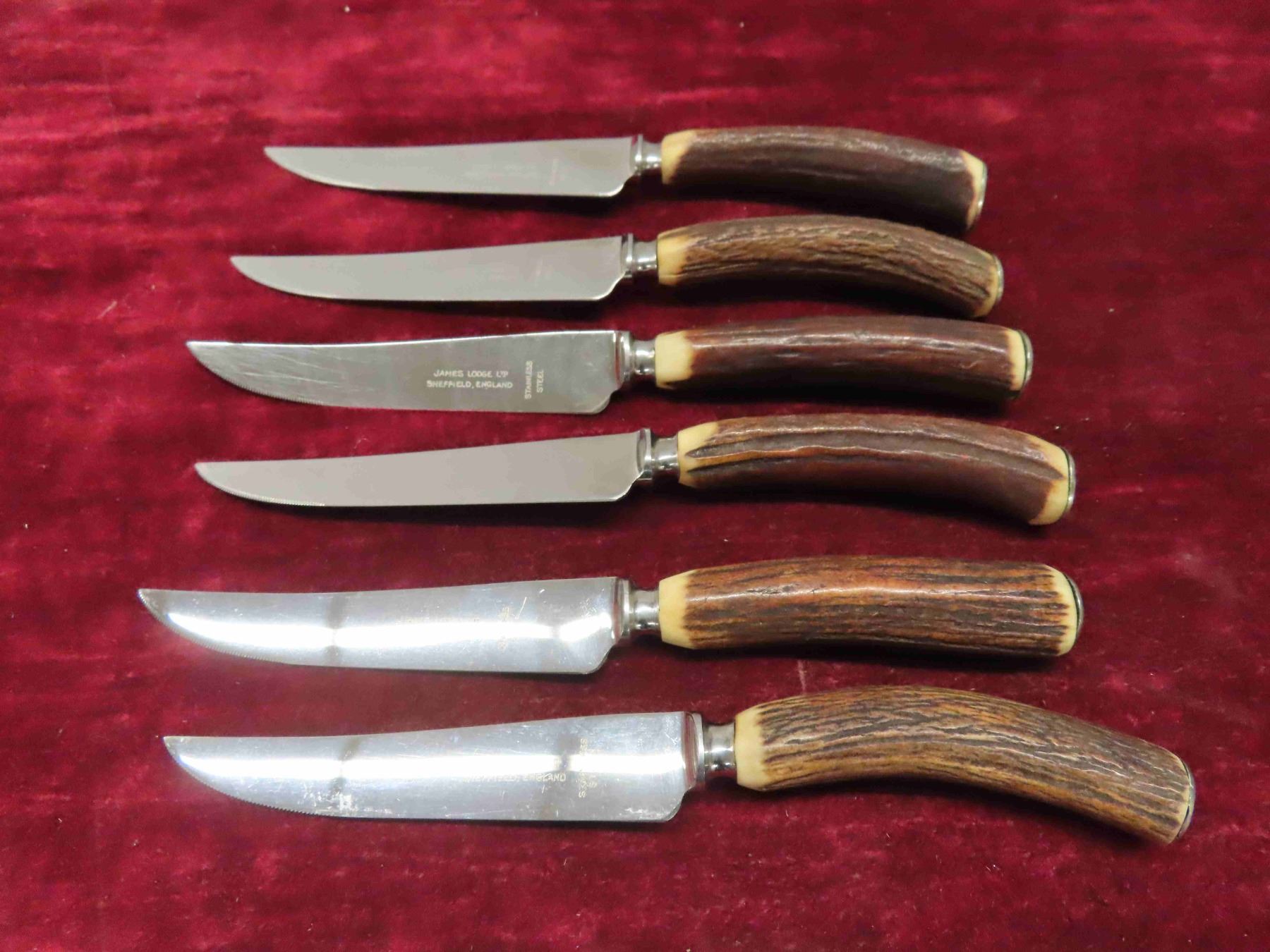 6 James Lodge Sheffield England Real Antler Steak Knives