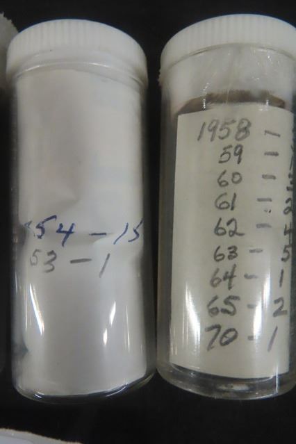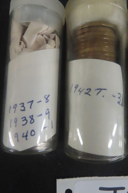 6 Jars of Canada 5 Cent 1937-1970 , 140 + Coins