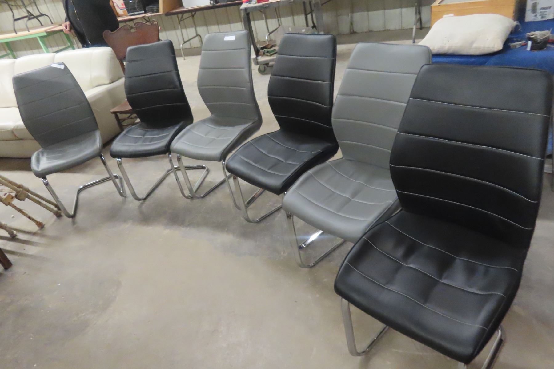 6 Leather/Leather Style Dining Room Chairs, Matching in 2 Colors ; Grey and Black