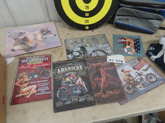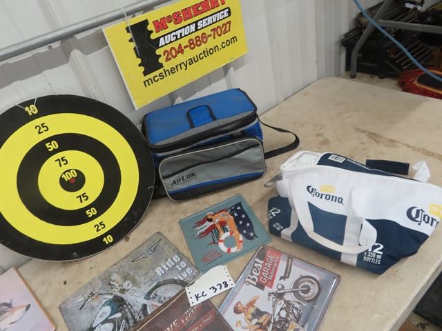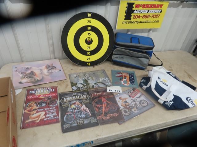 6 Modern Metal Signs & Dart Boad & Cooler & Carry On