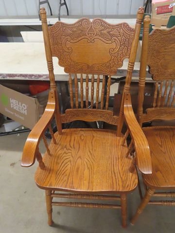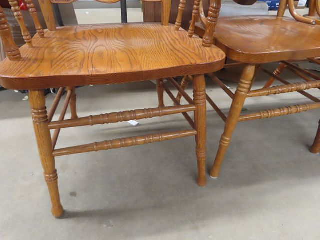 6 Modern Oak Double Press Back Chairs- 2 of Which Are Captain