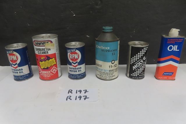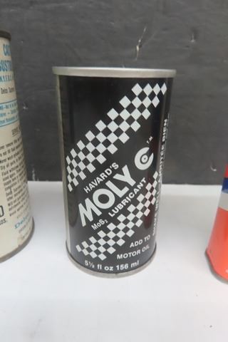 6 Oil / Automotive Product Tins with Contents ; Norton, RPM, Wynn's, Molly, plus more