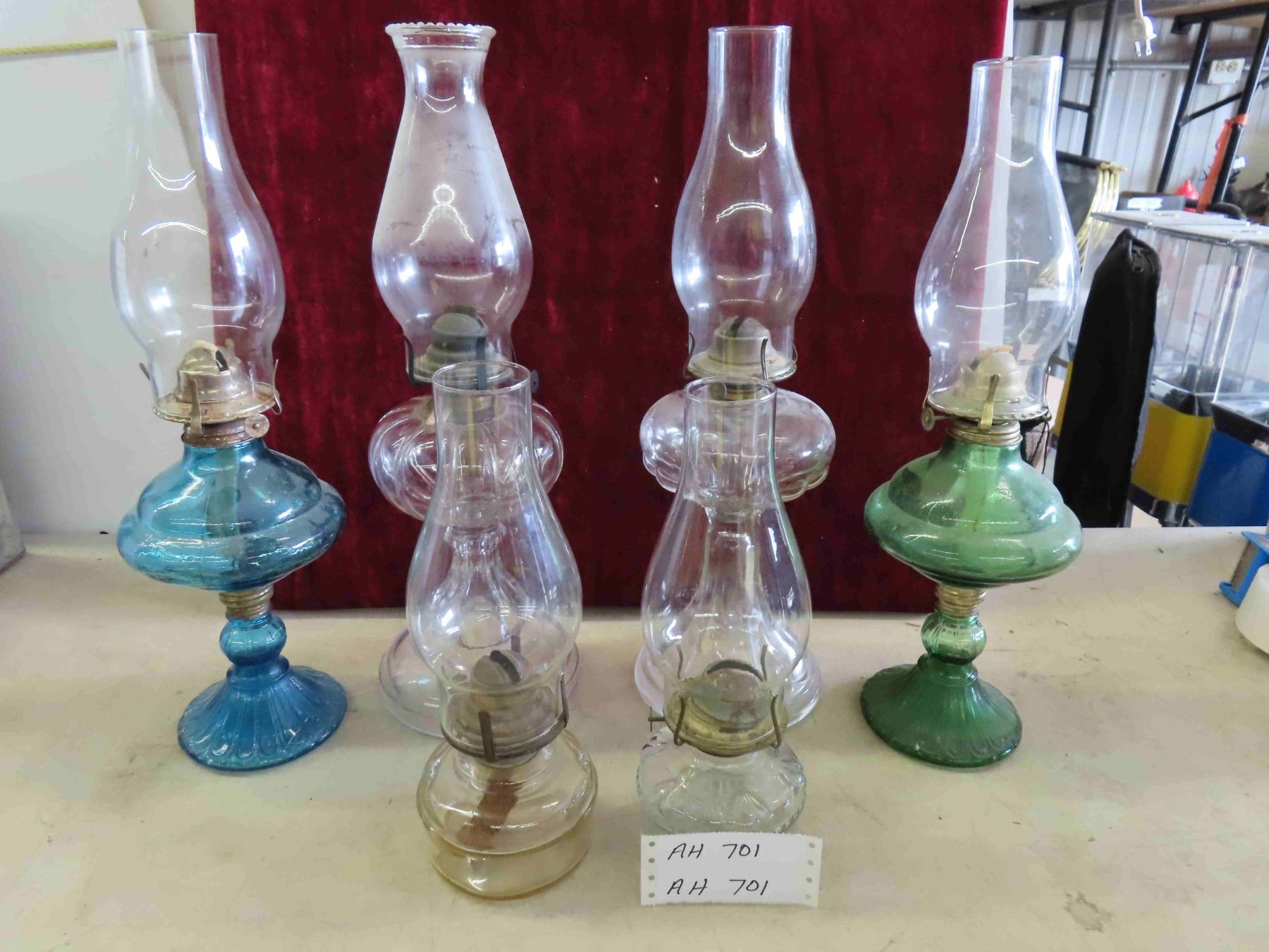 6 Oil Lamps - 2 with Colored Bases