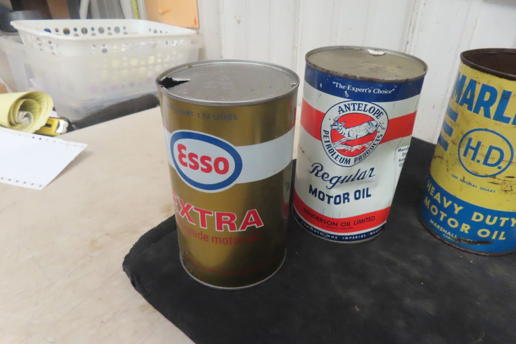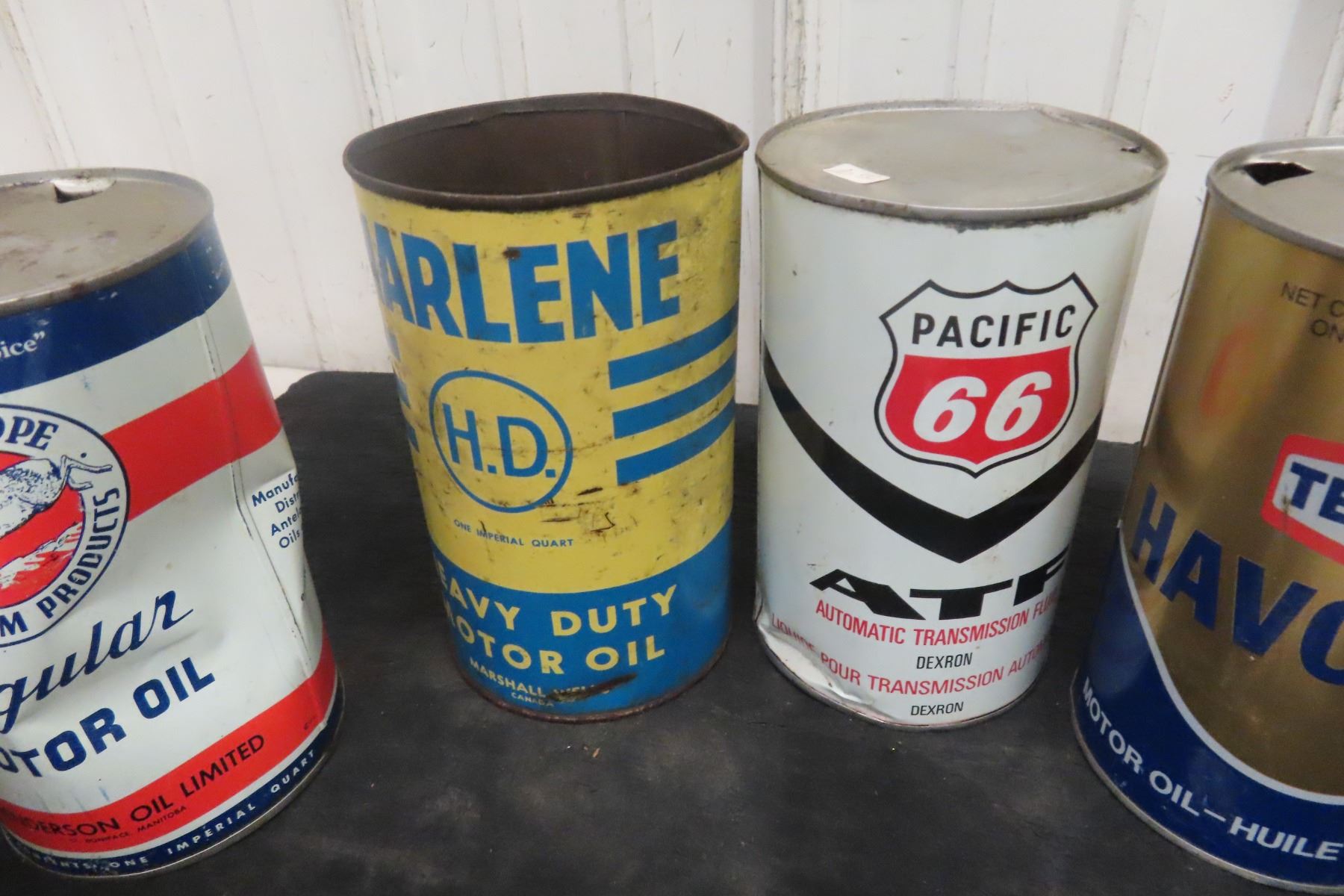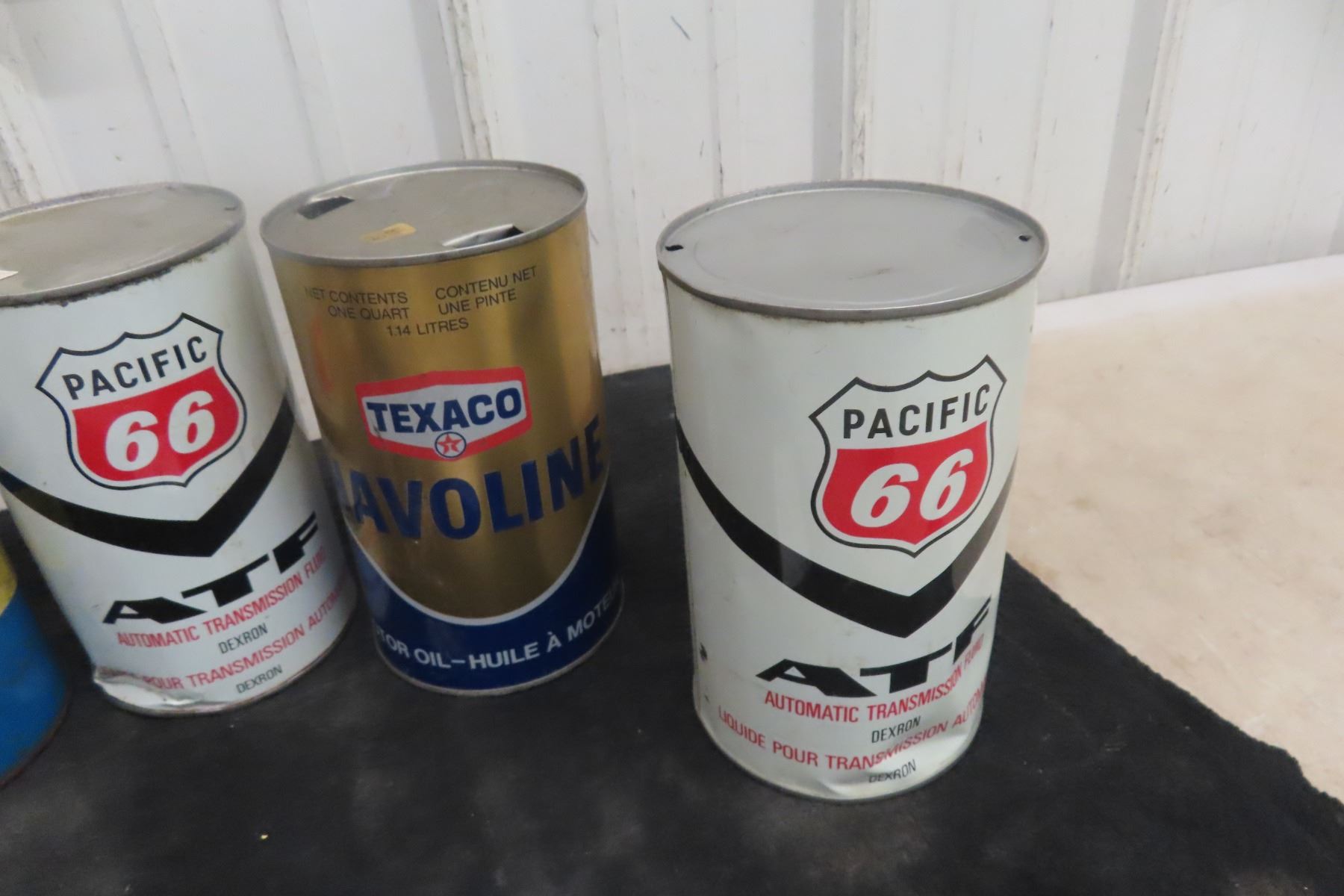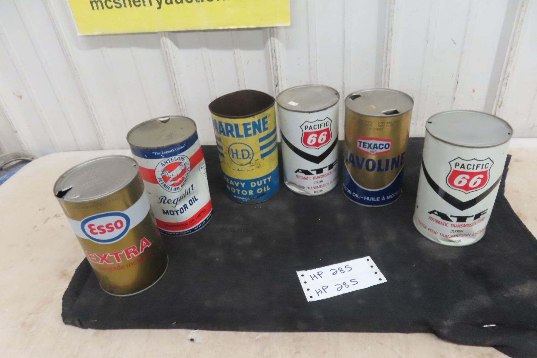 (6) Oil Quart Cans : Pacific 66, Texaco, Esso, Antelope, Plus.