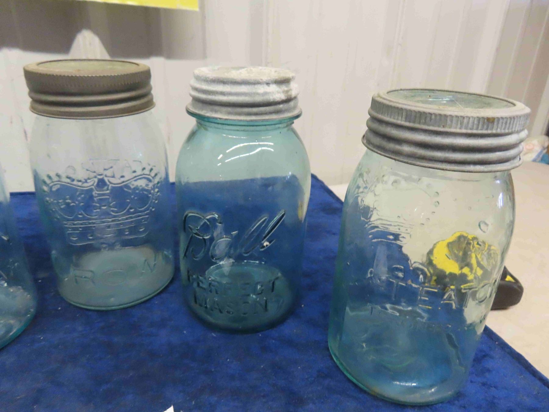 6 Old Sealers ; Crown, Ball, Mason, Eaton - 1/2 with Porcelain Lined Lids