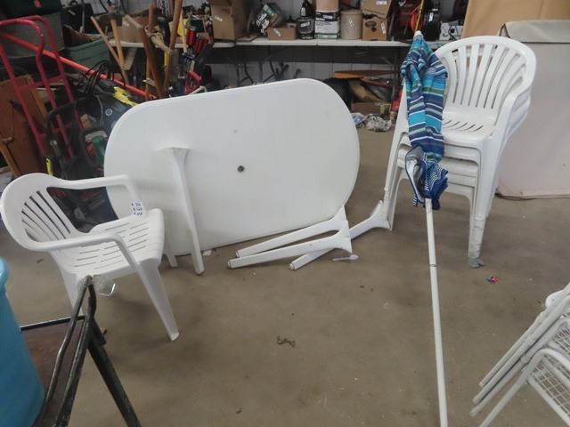6 Patio Chairs, Patio Table 36" x 58" & Umbrella