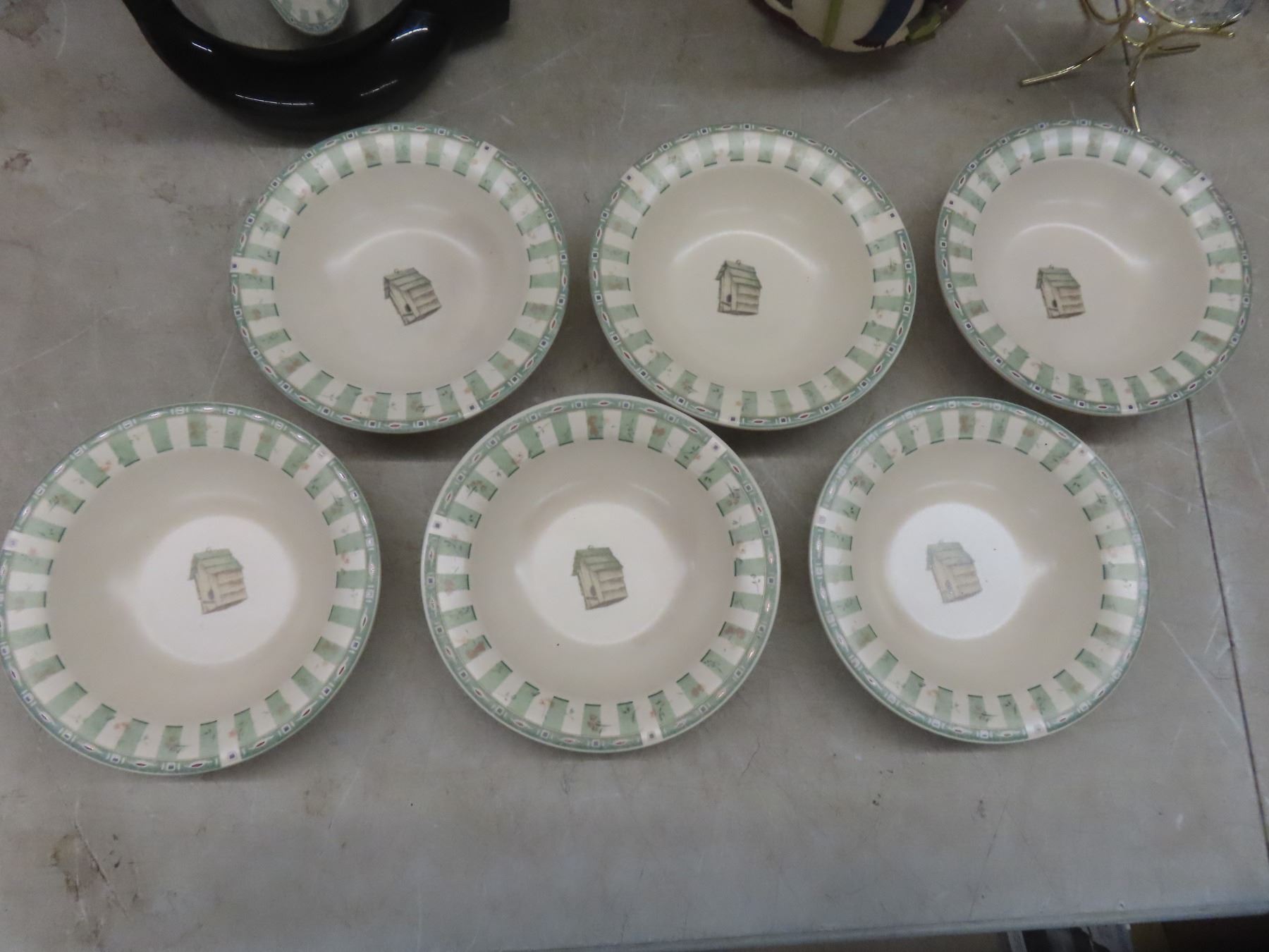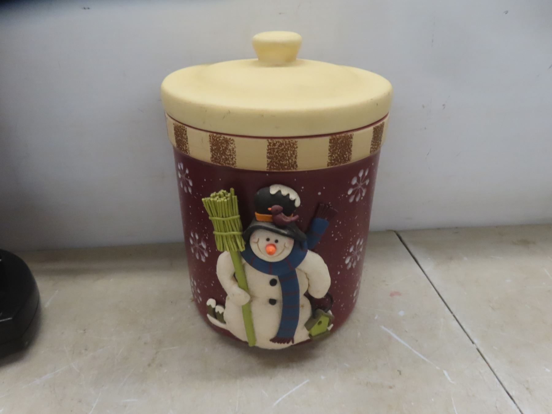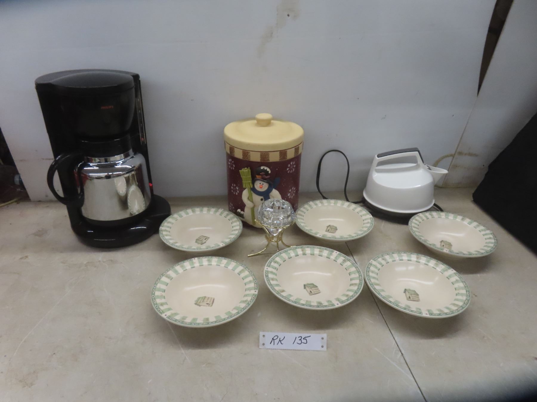 6 Pfaltzgraff Nature Wood Pattern Bowls , Partylite Candle Holder. Snowman Cookie Jar, Kattle + Phillips Coffee Maker