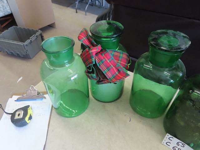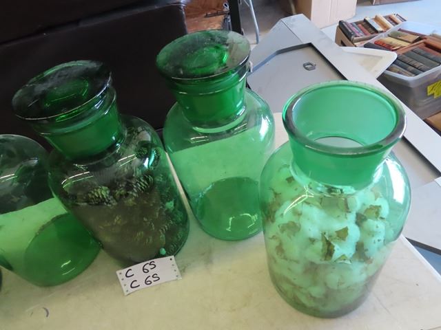 6 Pharmacy Bottles 14" Tall- 7" Rd Base, 4 w Lids