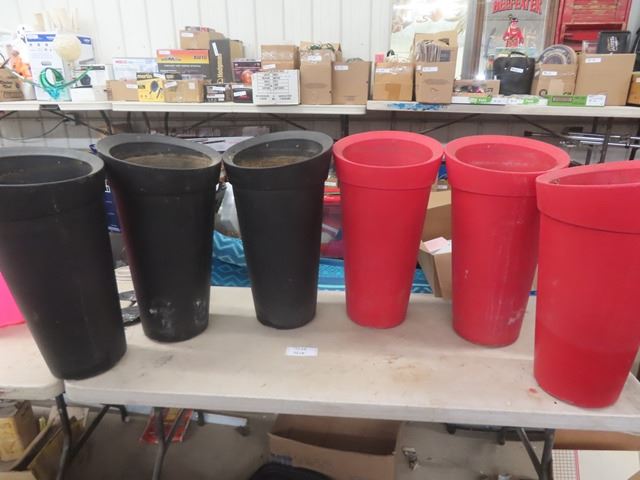 6 Plastic Planters ; 3 Red 3 Black 28" Tall 15" at it Widest