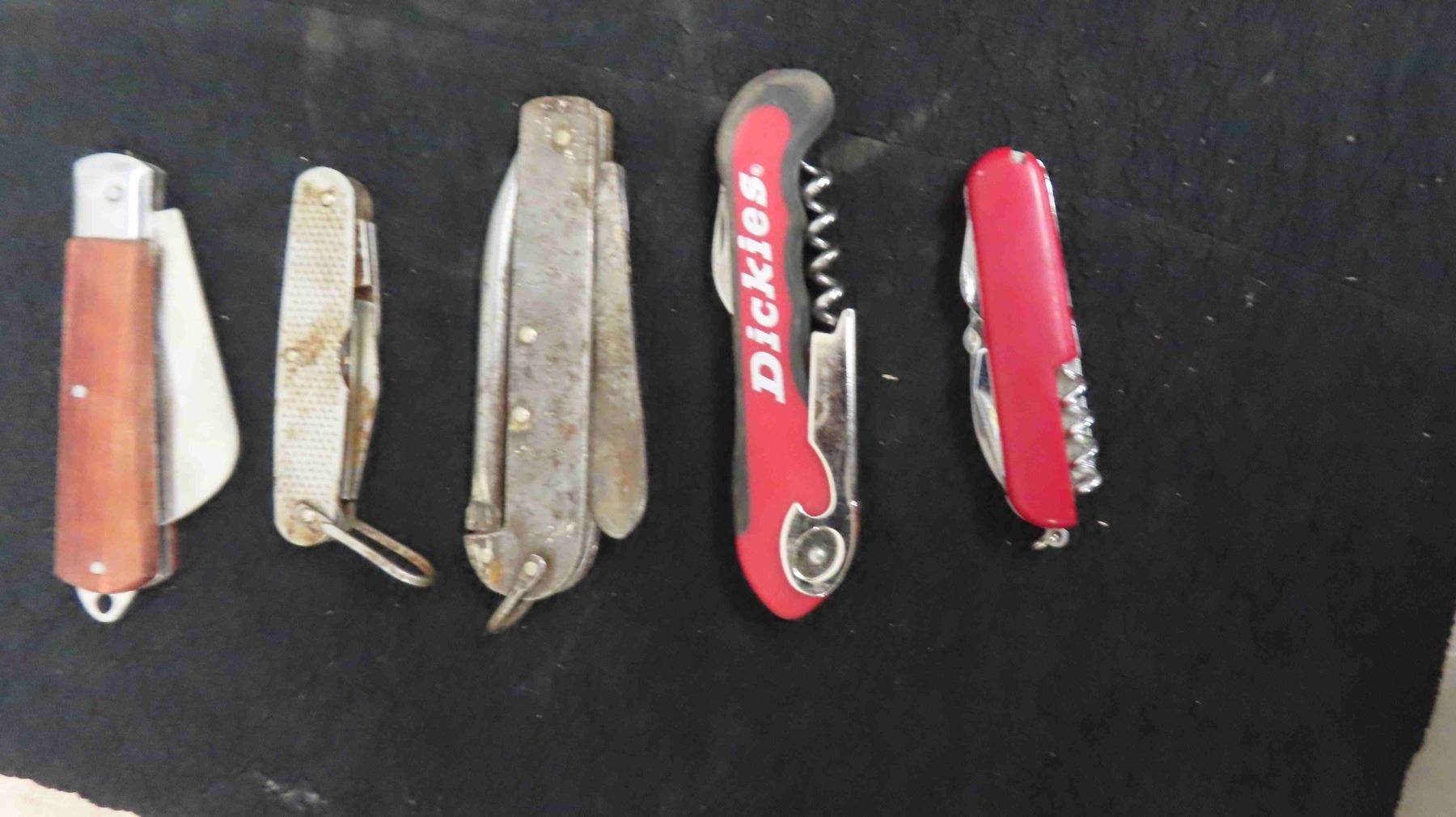 6 Pocket Knives - some with Tools, Corkscrews, plus more