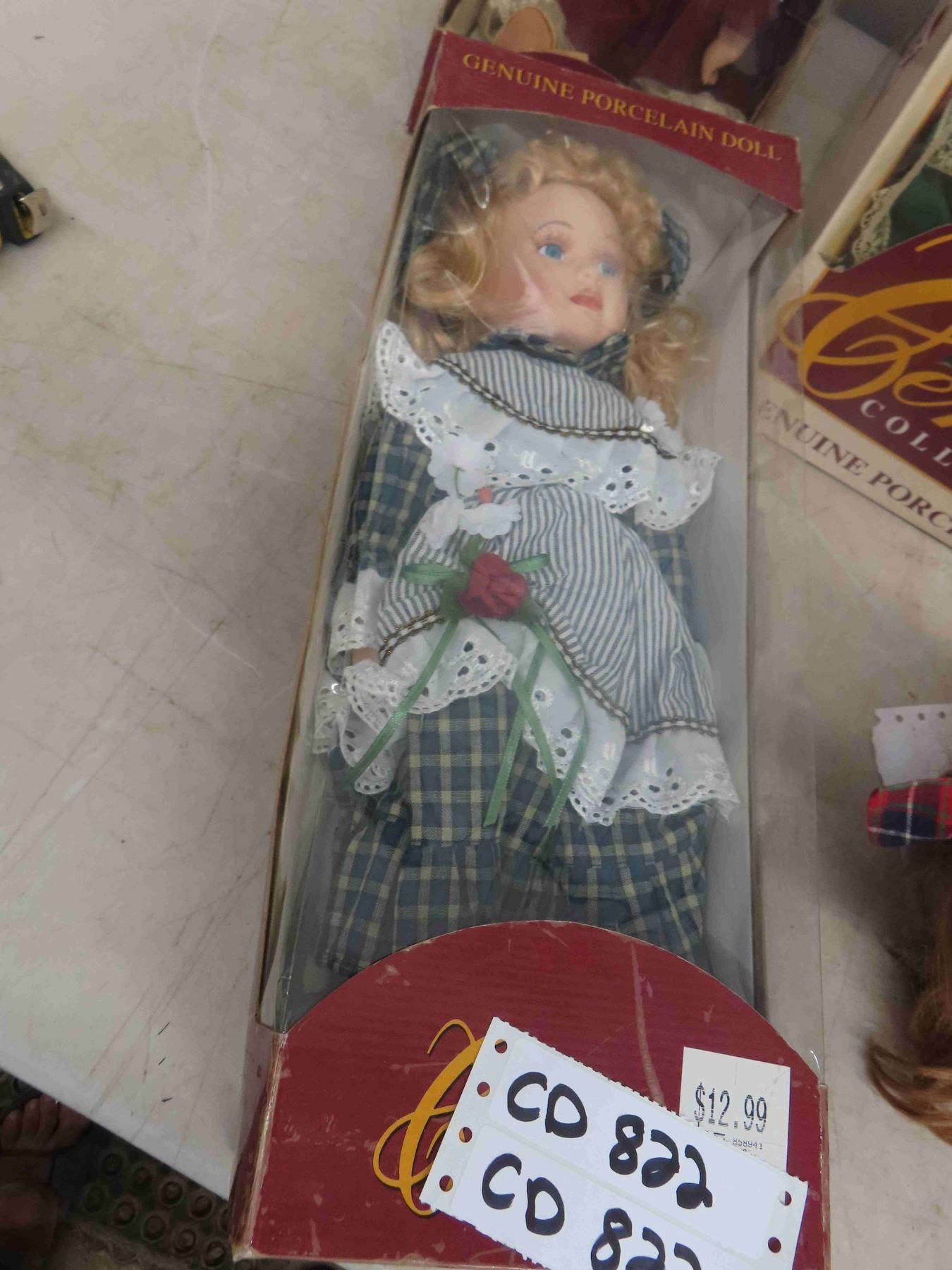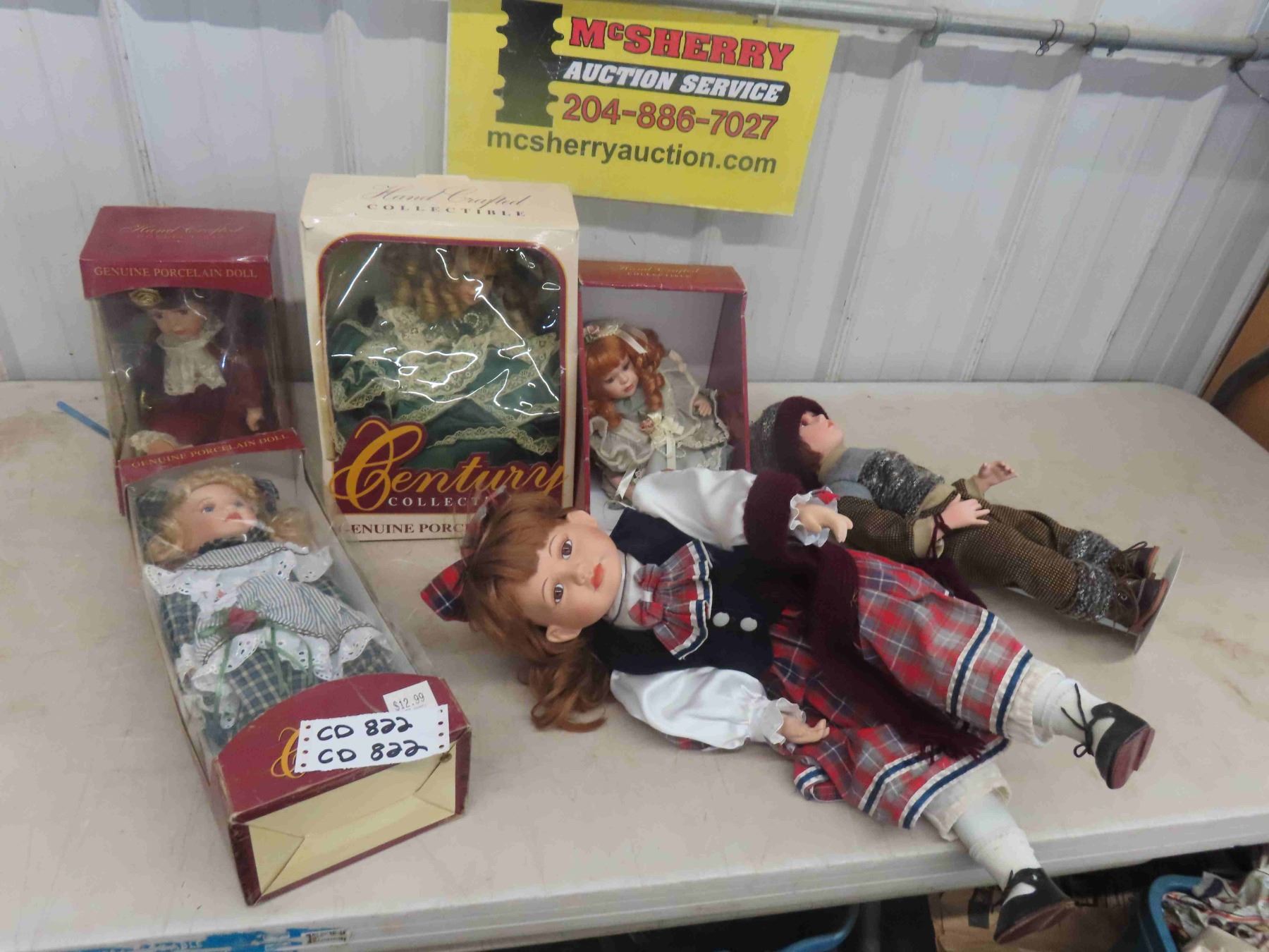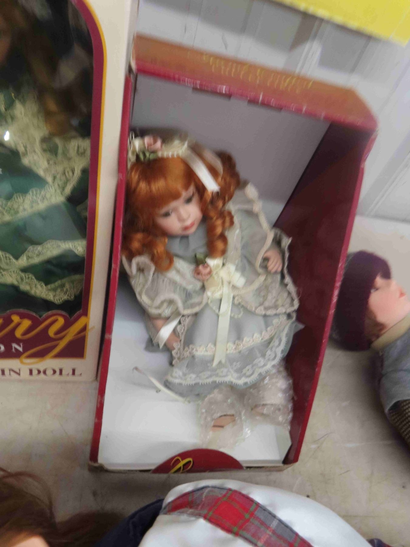 6 Porcelain Dolls - 4 with Boxes - 12  to 24  Tall
