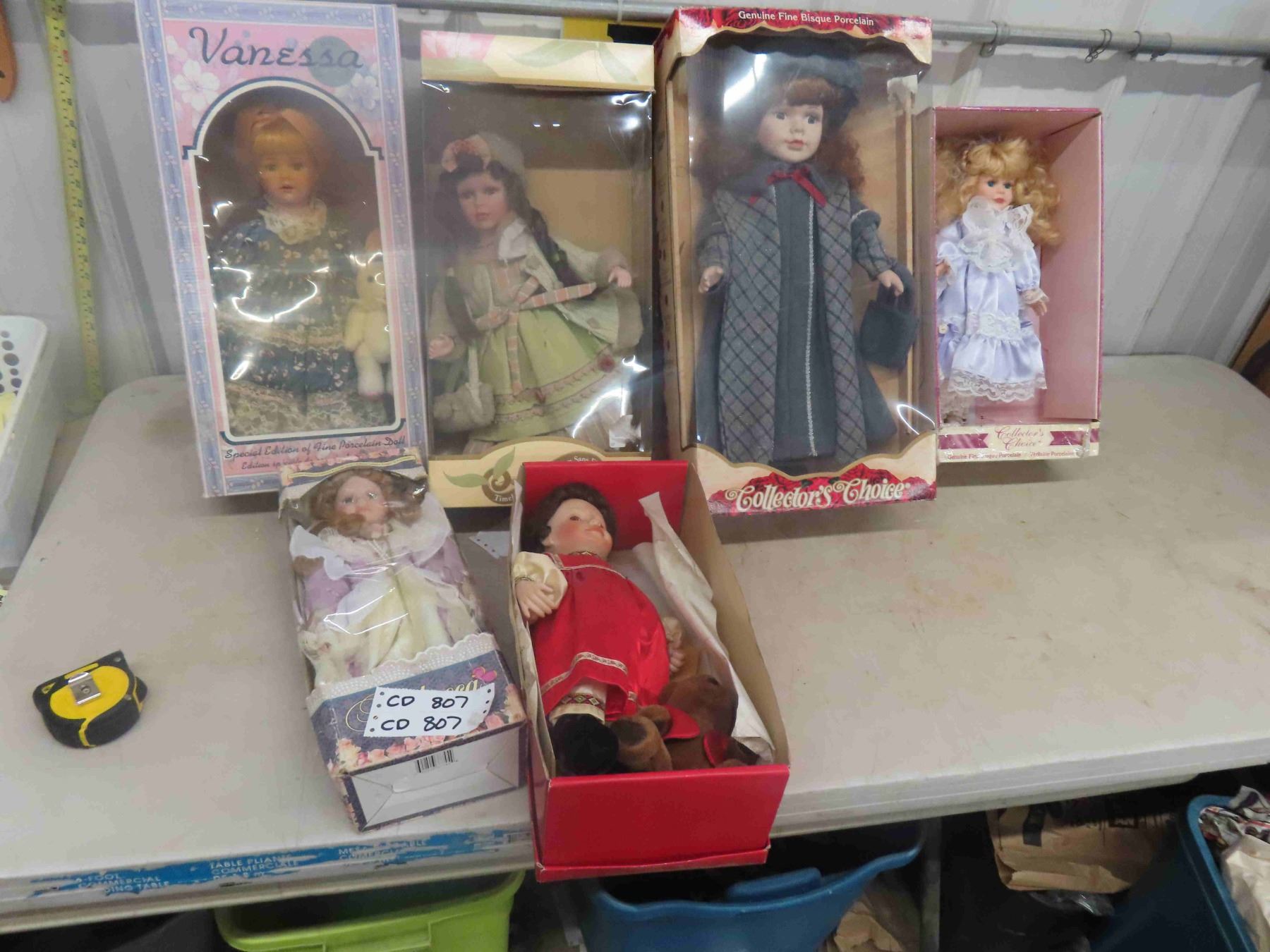 6 Porcelain Dolls with Boxes 15" to 20" Tall