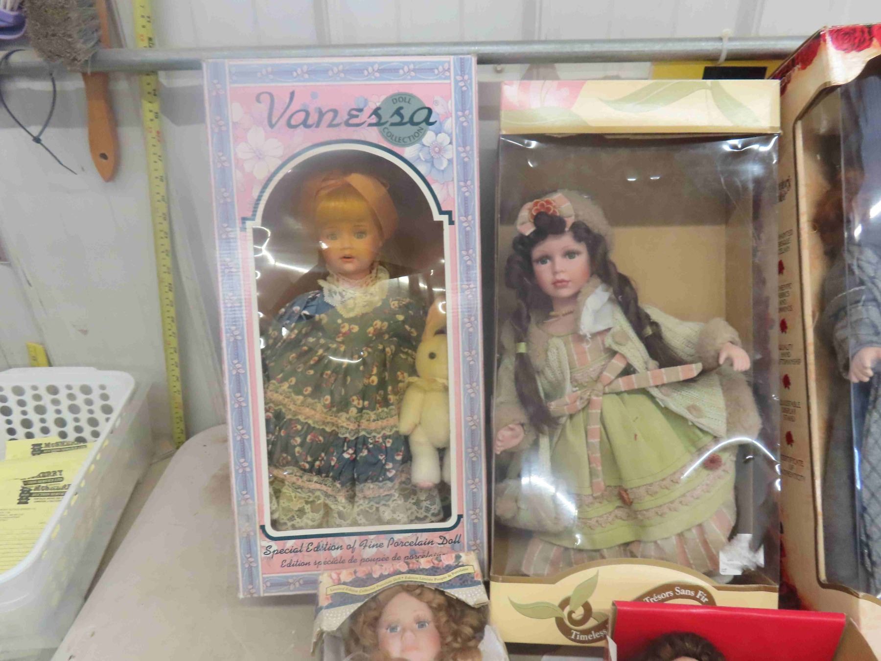 6 Porcelain Dolls with Boxes 15  to 20  Tall