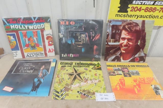 6 Records - Chipmunks Hollywood, REO Speed Wagon, Fonzie, George Carlin, Hells Angels on Wheels,
